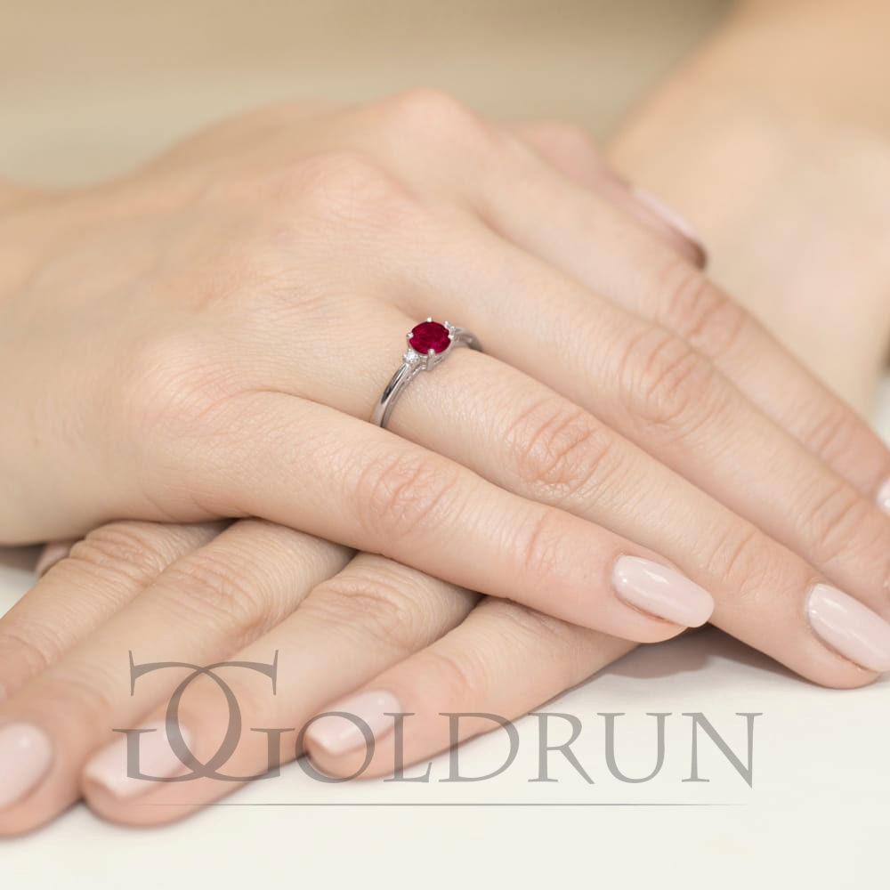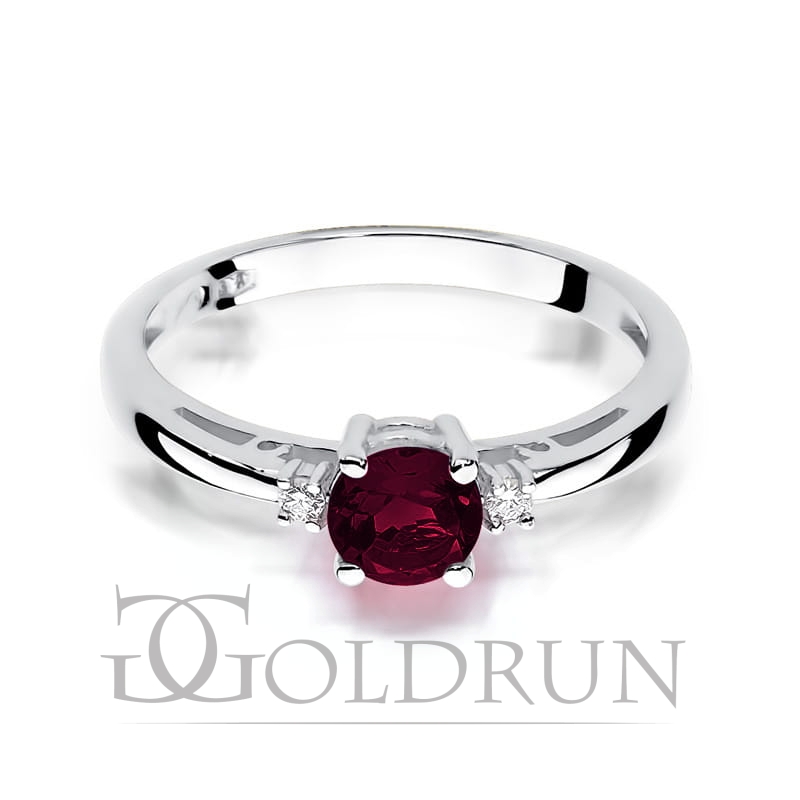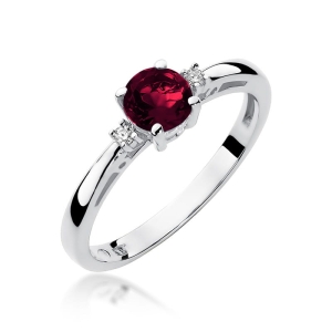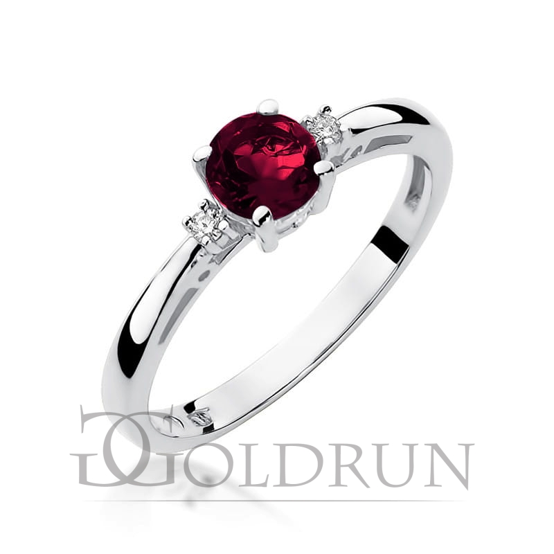 Pierścionek zaręczynowy z białego złota z granatem i diamentami 0,03ct Fire Of Love