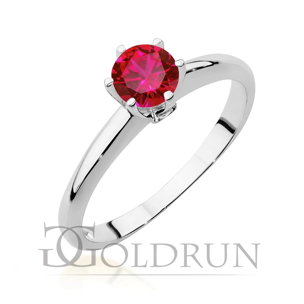 Pierścionek zaręczynowy z białego złota z rubinem i diamentami 0,04ct Fire Of Love