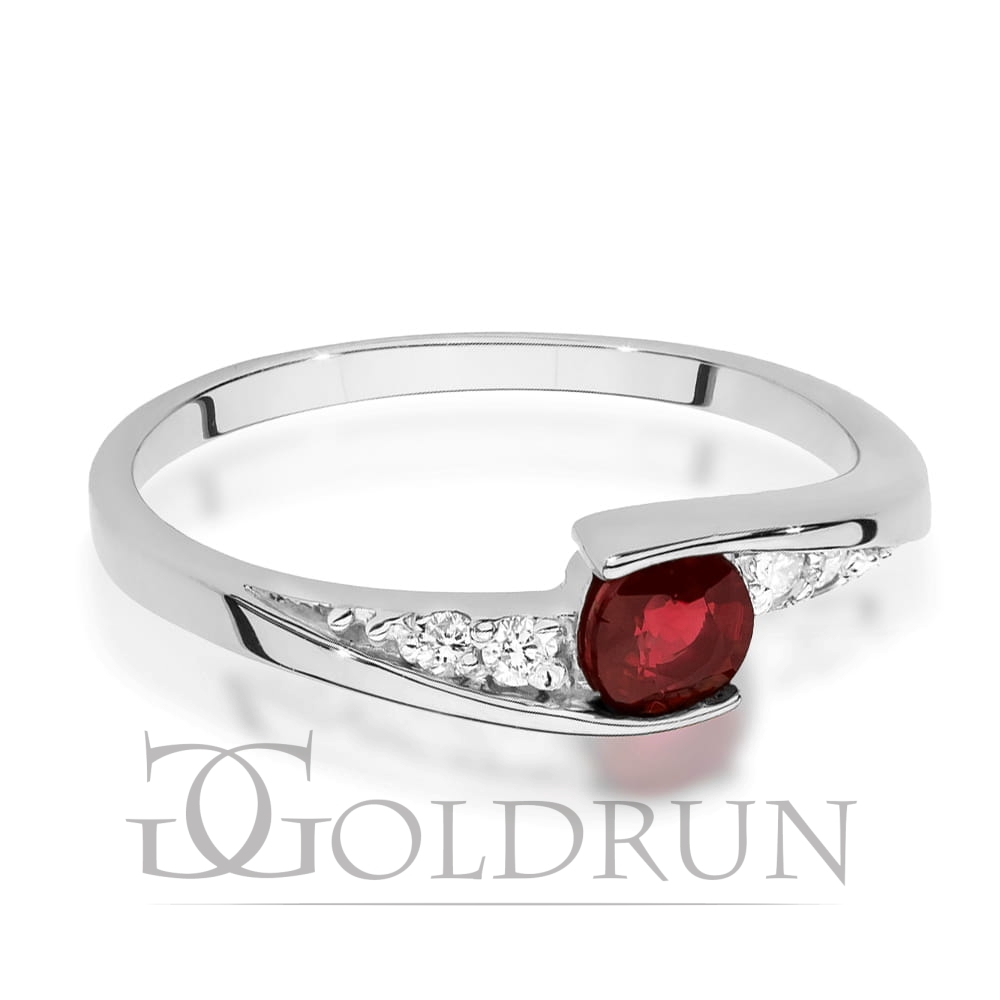 Pierścionek zaręczynowy z białego złota z rubinem i diamentami 0,06ct Fire Of Love