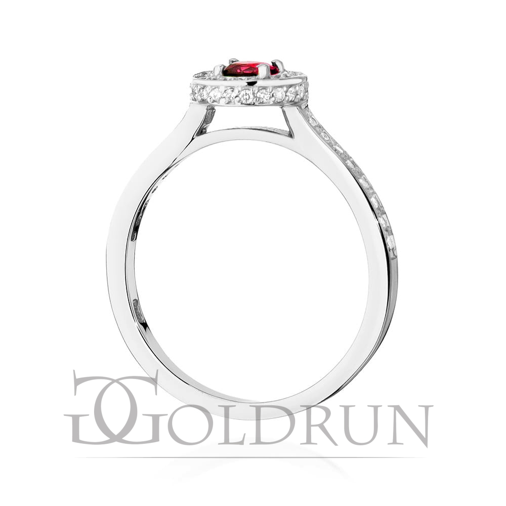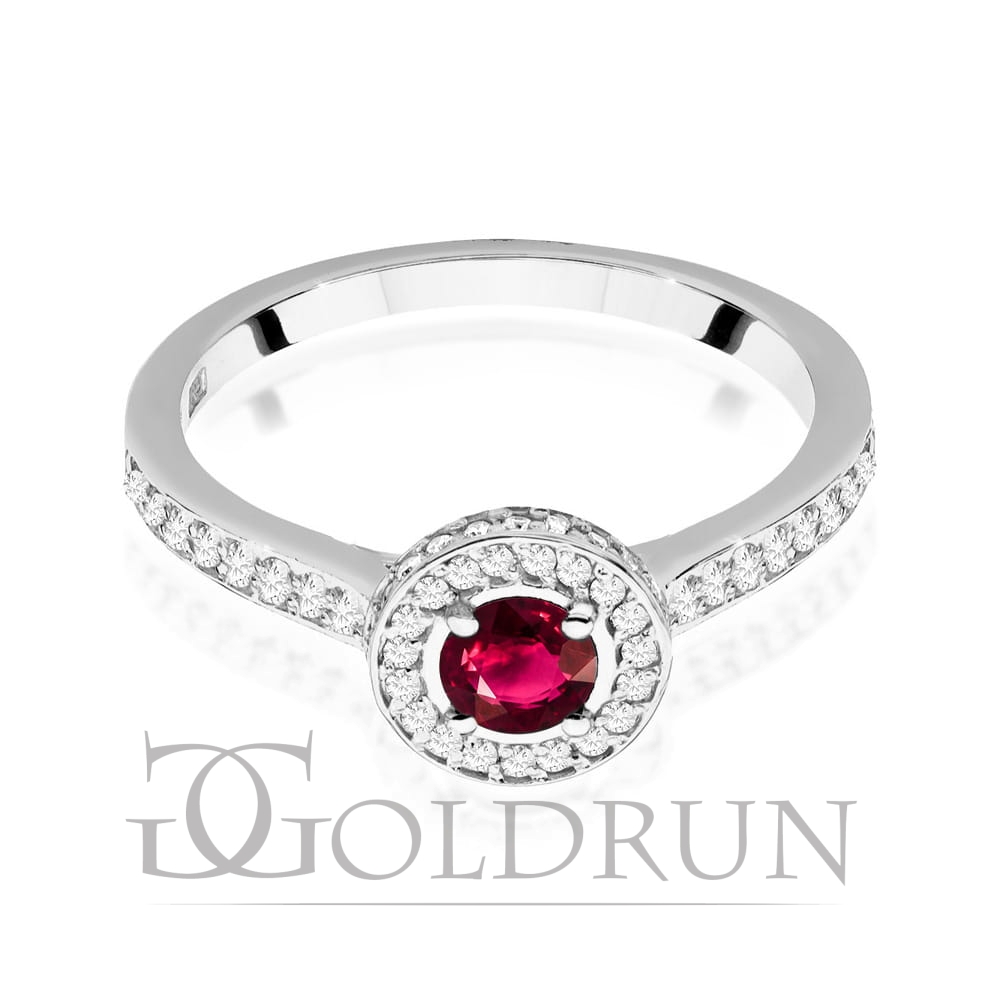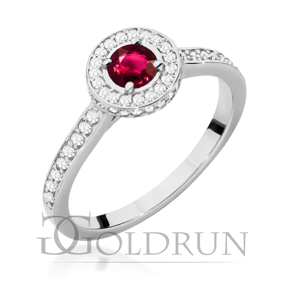 Pierścionek zaręczynowy z białego złota z rubinem i diamentami Fire Of Love