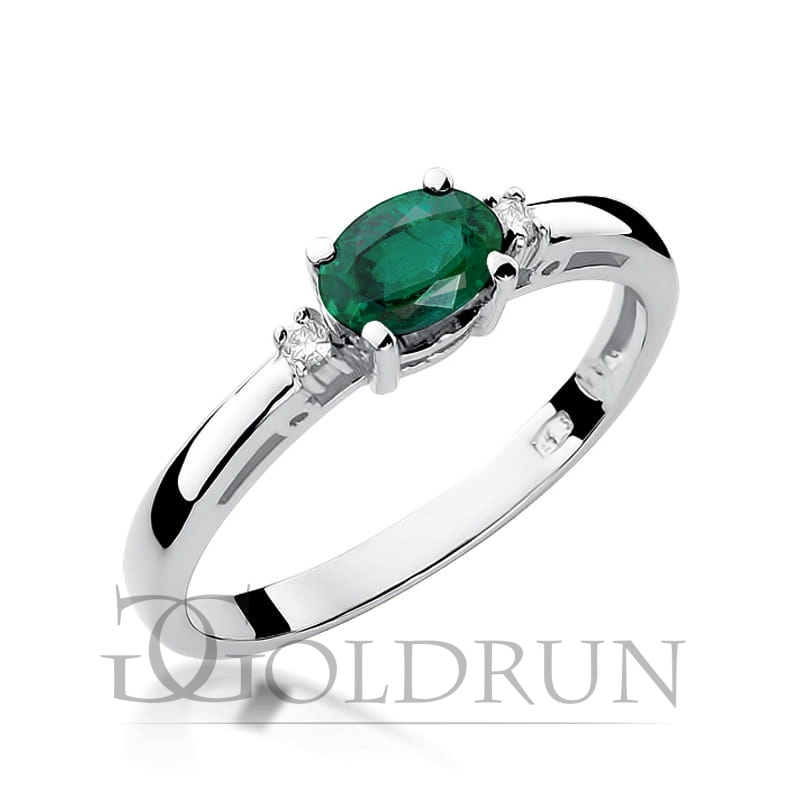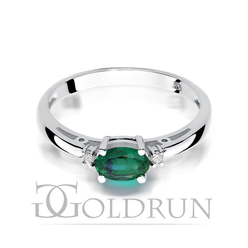 Pierścionek zaręczynowy z białego złota z szmaragdem i diamentami 0,03ct Fire Of Love