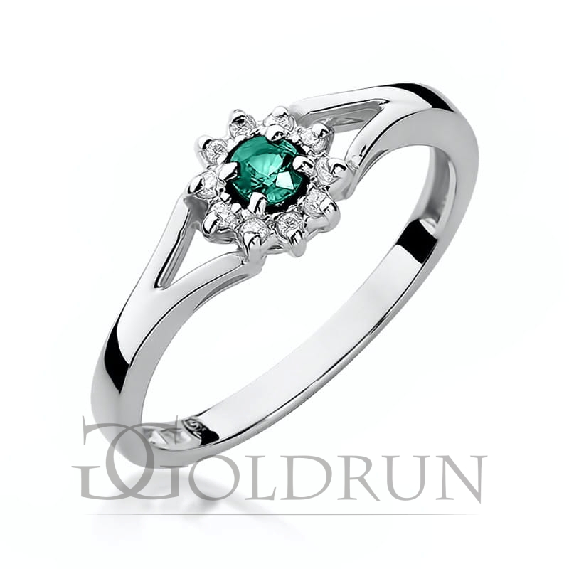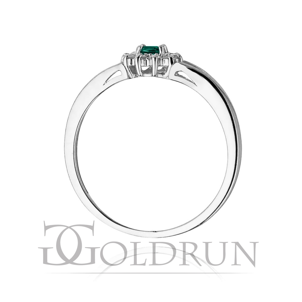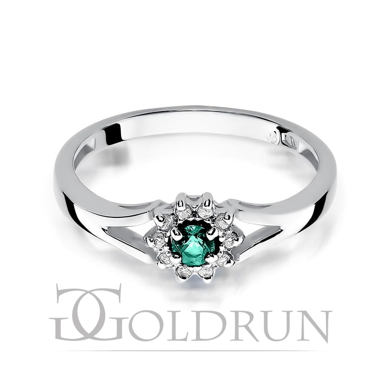 Pierścionek zaręczynowy z białego złota z szmaragdem i diamentami 0,09ct Fire Of Love