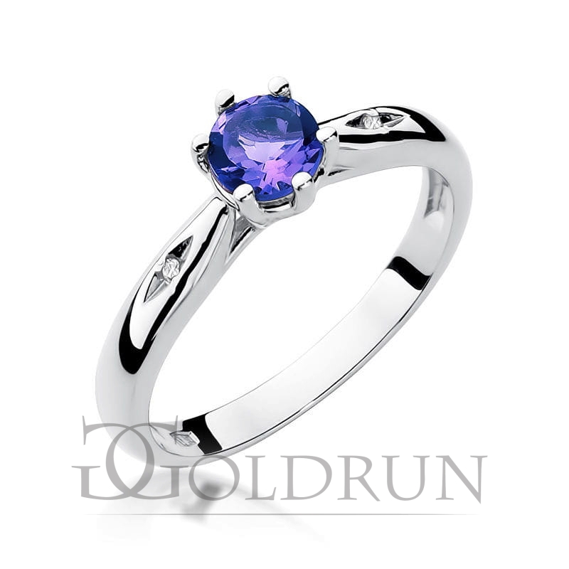 Pierścionek zaręczynowy z białego złota z tanzanitem i diamentami 0,01ct Fire Of Love