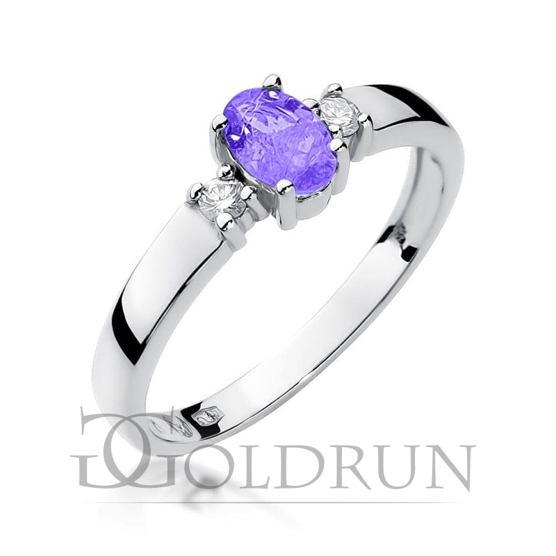 Pierścionek zaręczynowy z białego złota z tanzanitem i diamentami 0,08ct Fire Of Love