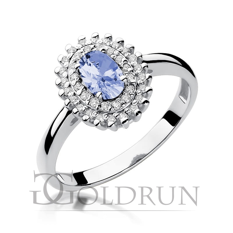 Pierścionek zaręczynowy z białego złota z tanzanitem i diamentami 0,19ct Fire Of Love
