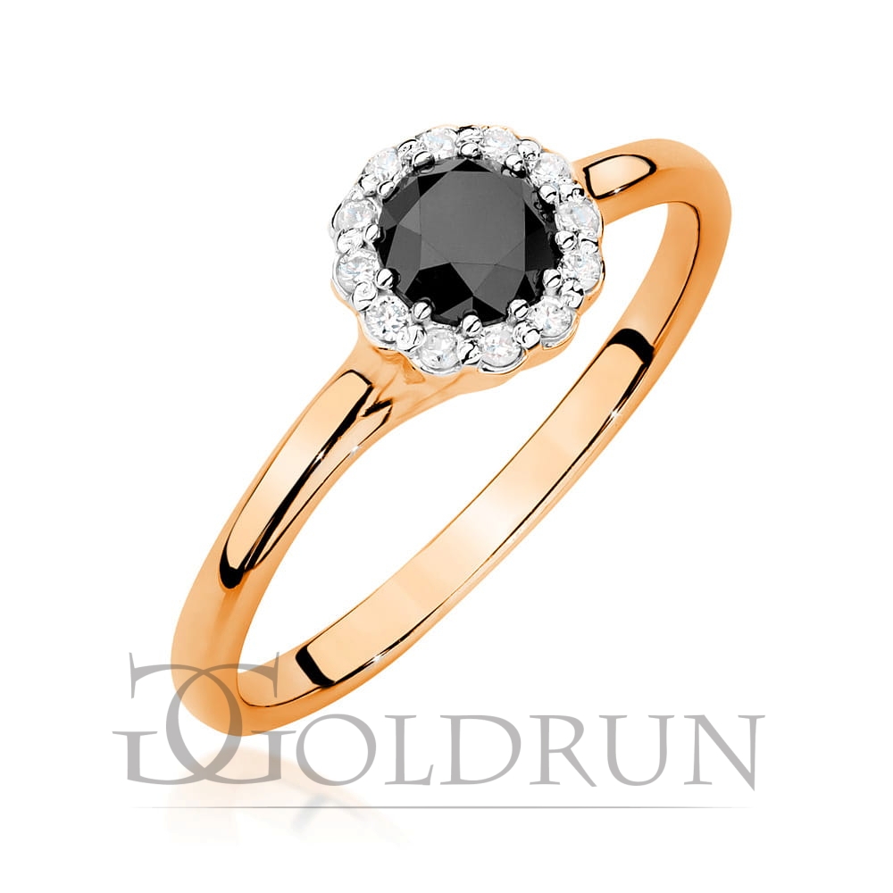 Pierścionek zaręczynowy z różowego złota czarnym diamentem i diamentami 0,10ct Fire Of Love