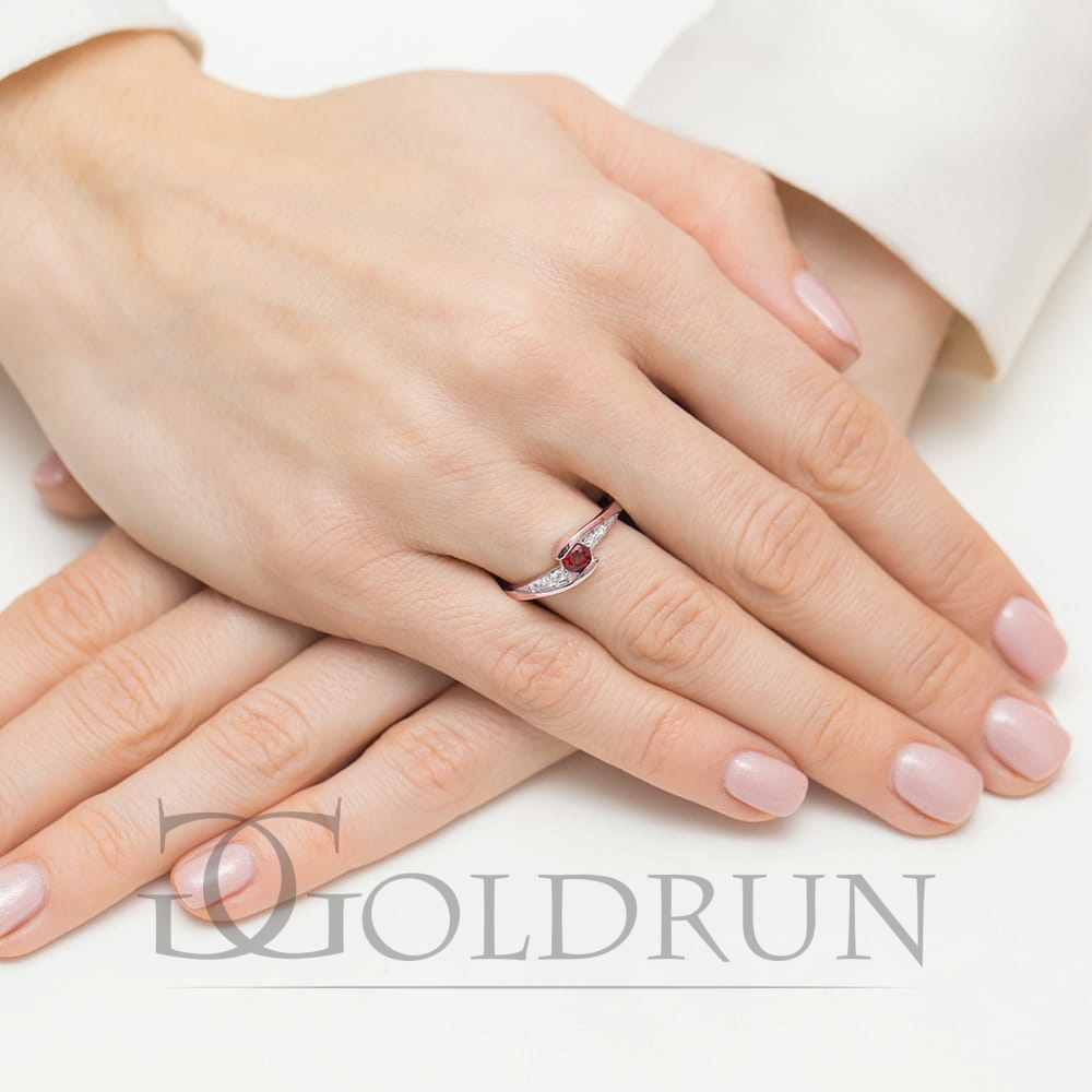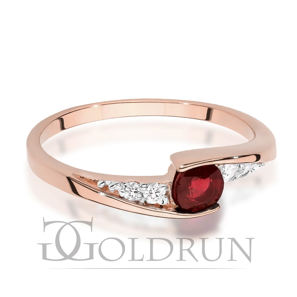 Pierścionek zaręczynowy z różowego złota z rubinem i diamentami 0,06ct Fire Of Love