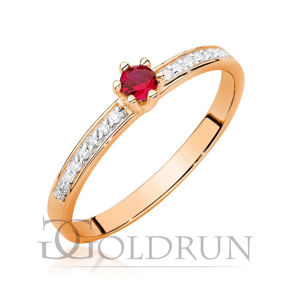 Pierścionek zaręczynowy z różowego złota z rubinem i diamentami 0,07ct Fire Of Love