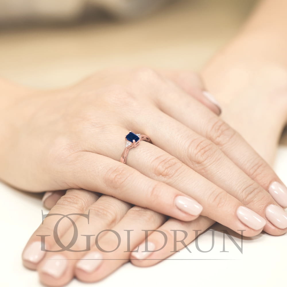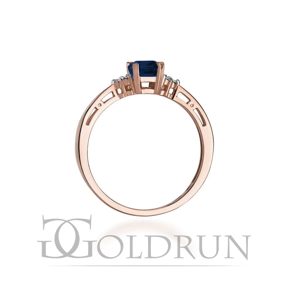 Pierścionek zaręczynowy z różowego złota z szafirem i diamentami 0,03ct Fire Of Love