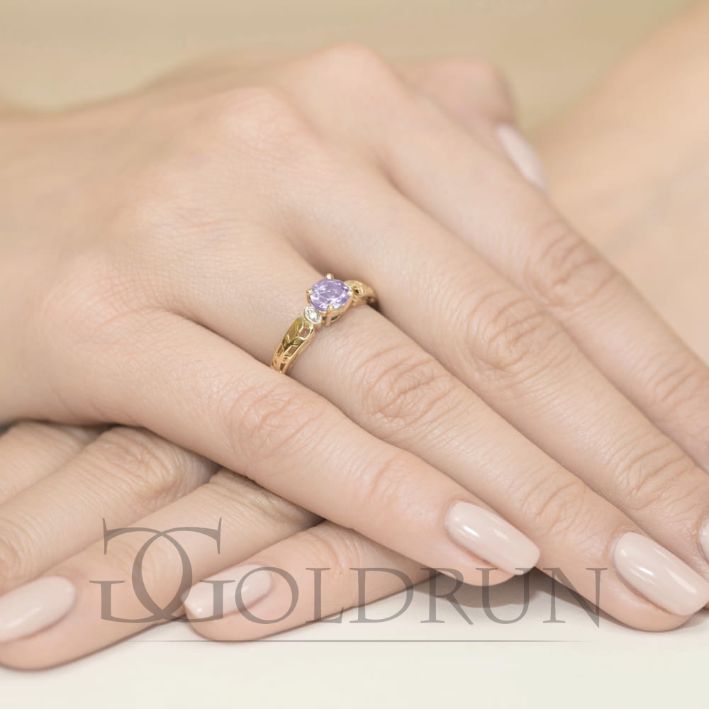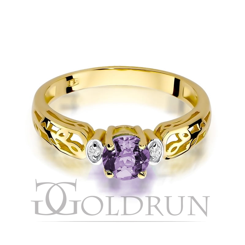 Pierścionek zaręczynowy z żółtego złota z ametystem i diamentami 0,02ct Fire Of Love