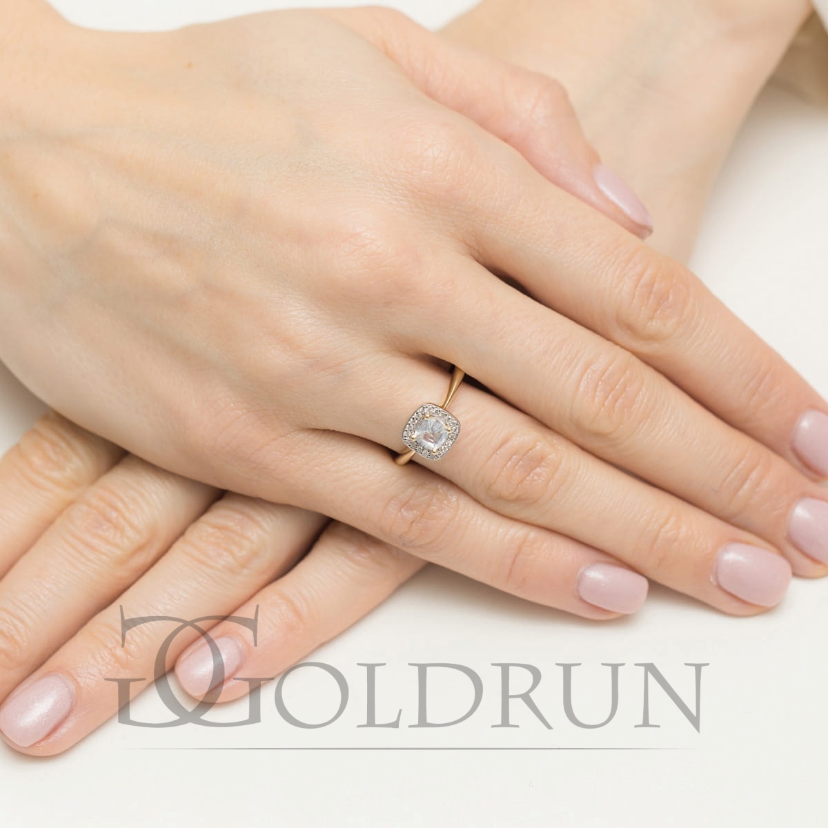 Pierścionek zaręczynowy z żółtego złota z białym szafirem i diamentami 0,10ct Fire Of Love