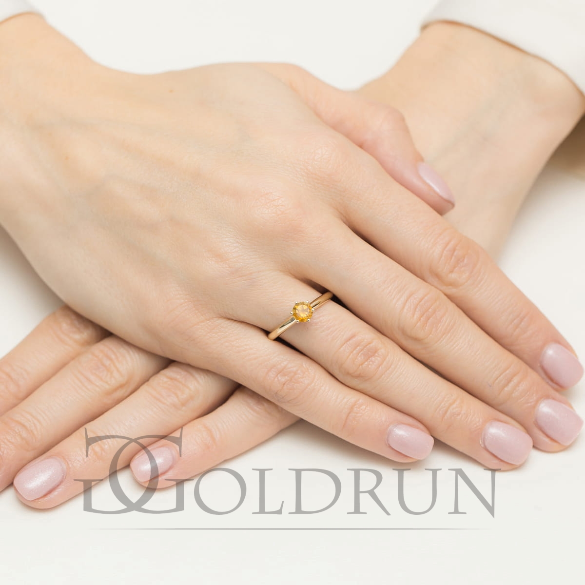 W pierścionku oprawiony cytryn o masie 0,500ct