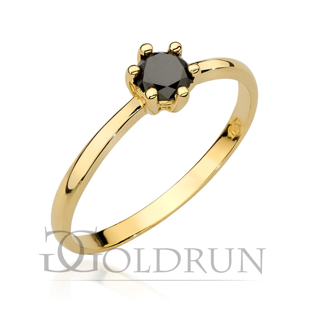 Pierścionek zaręczynowy z żółtego złota z czarnym diamentem 0,30ct Fire Of Love