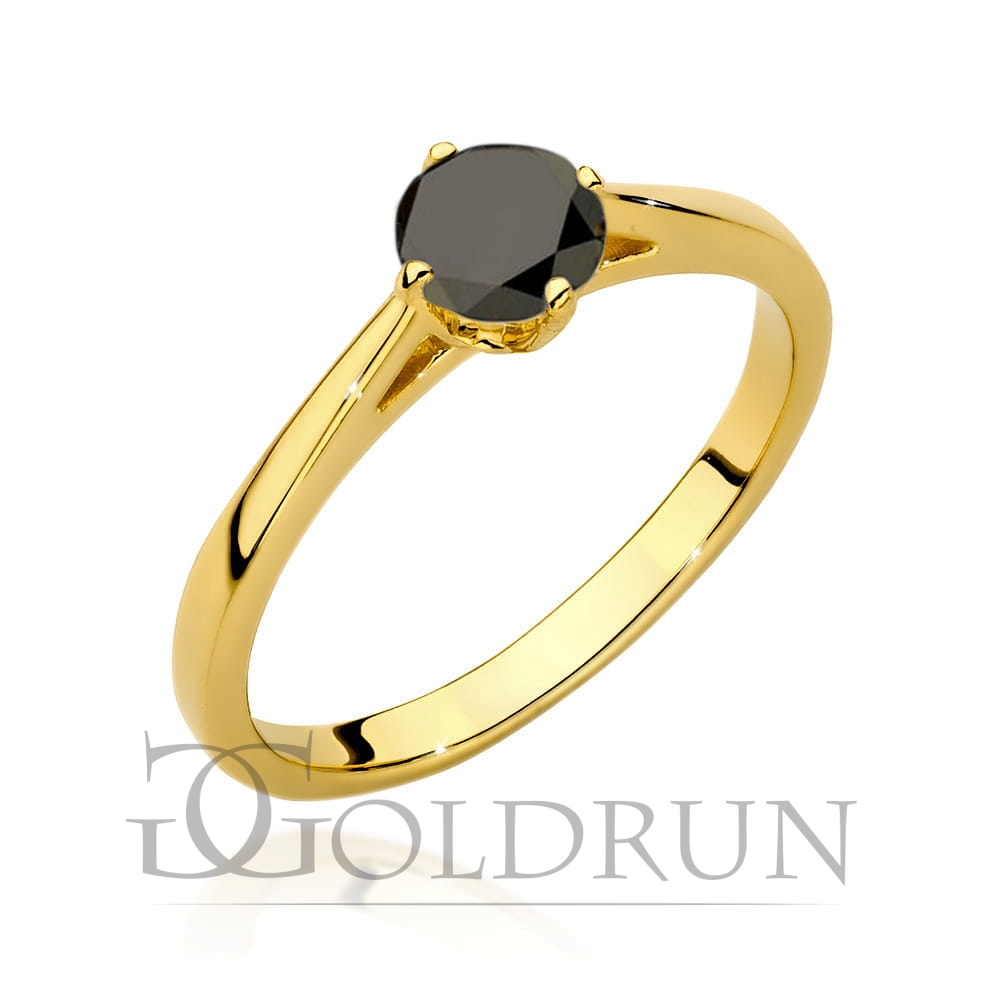 Pierścionek zaręczynowy z żółtego złota z czarnym diamentem 0,60ct Paris Love