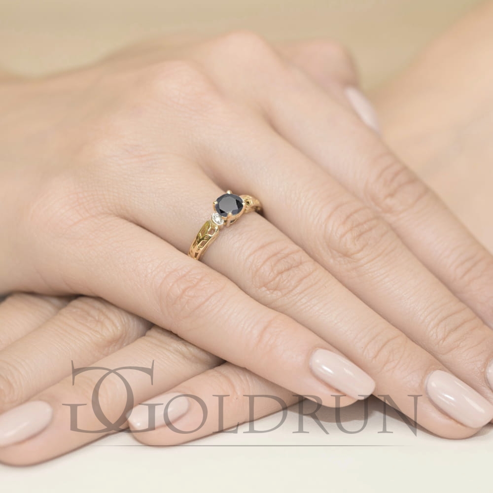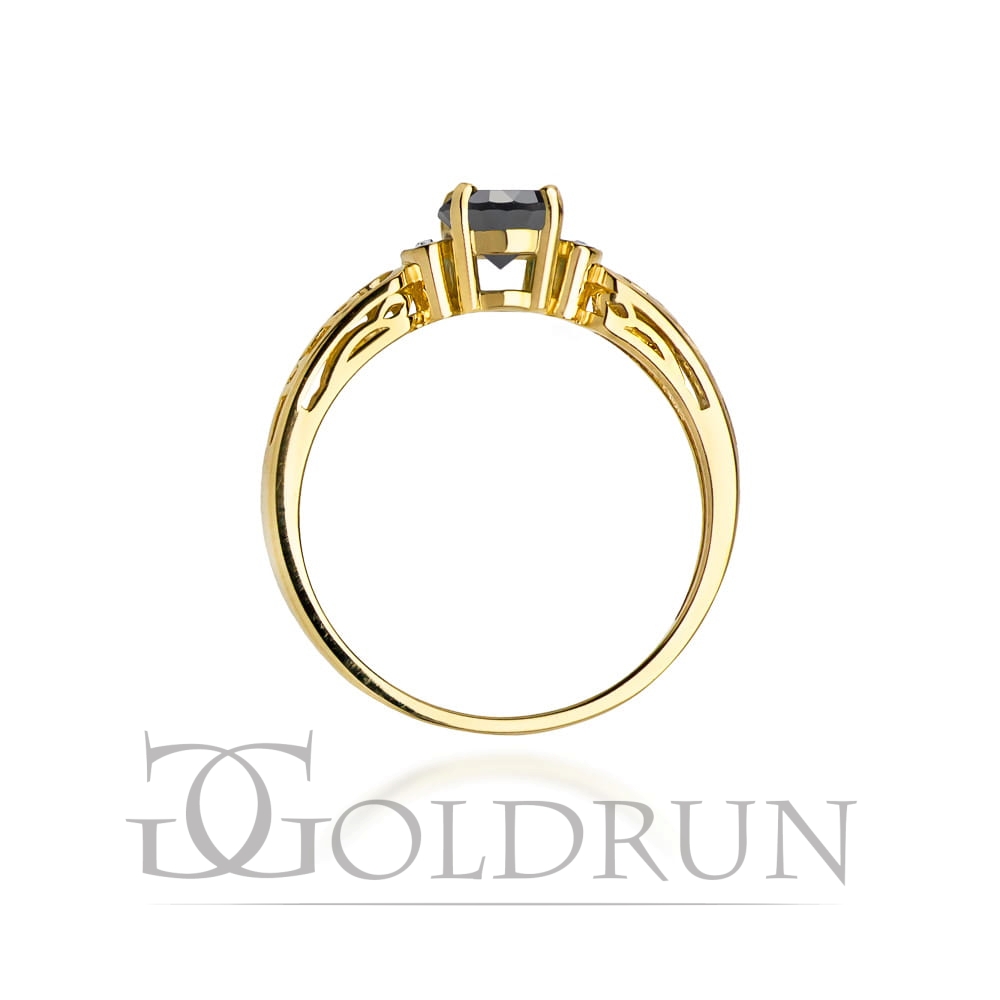 Pierścionek zaręczynowy z żółtego złota z czarnym diamentem i diamentami 0,02ct Fire Of Love