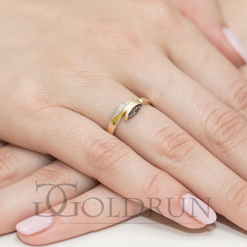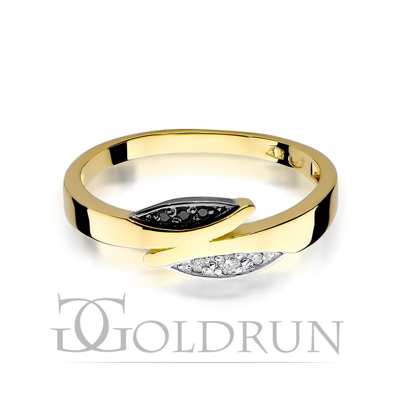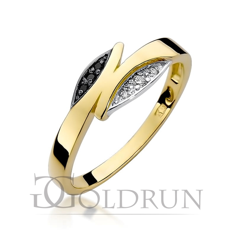Pierścionek zaręczynowy z żółtego złota z czarnymi i białymi diamentami 0,03ct Fire Of Love