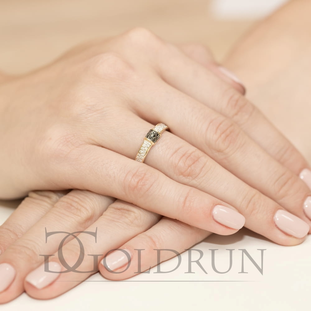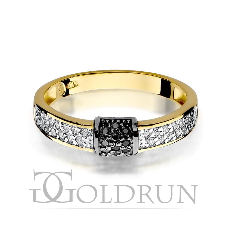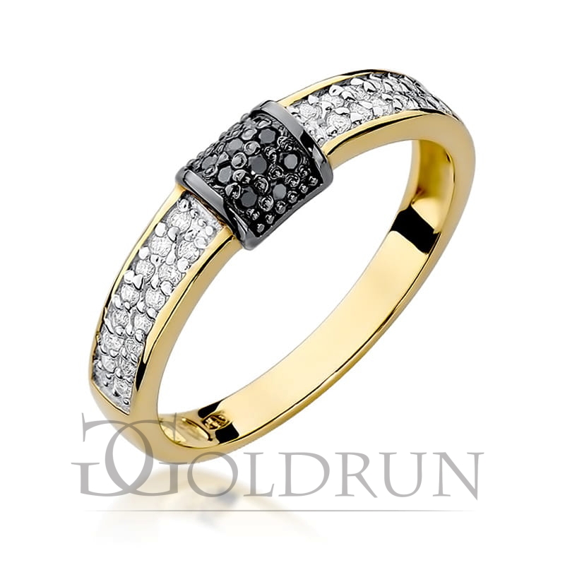 Pierścionek zaręczynowy z żółtego złota z czarnymi i białymi diamentami 0,14ct Fire Of Love