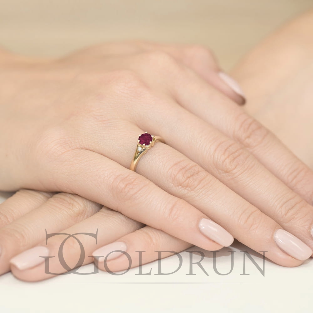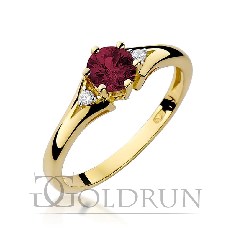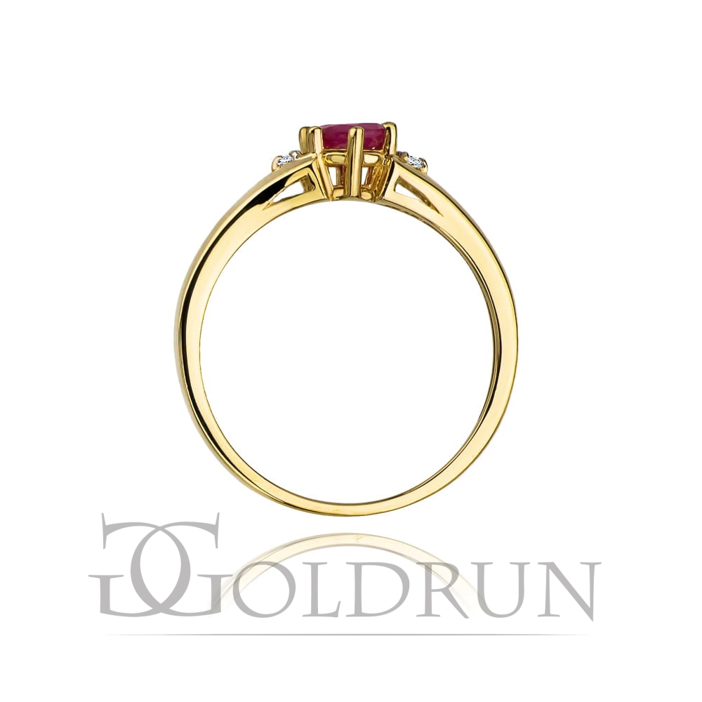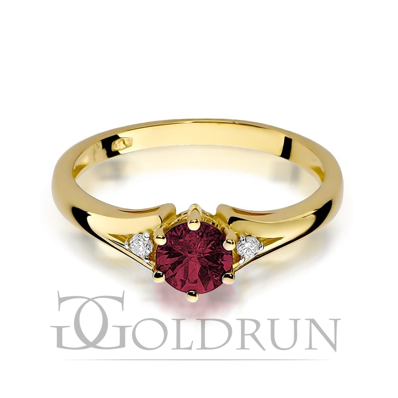 Pierścionek zaręczynowy z żółtego złota z rubinem i diamentami 0,03ct Fire Of Love