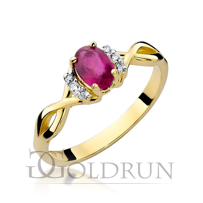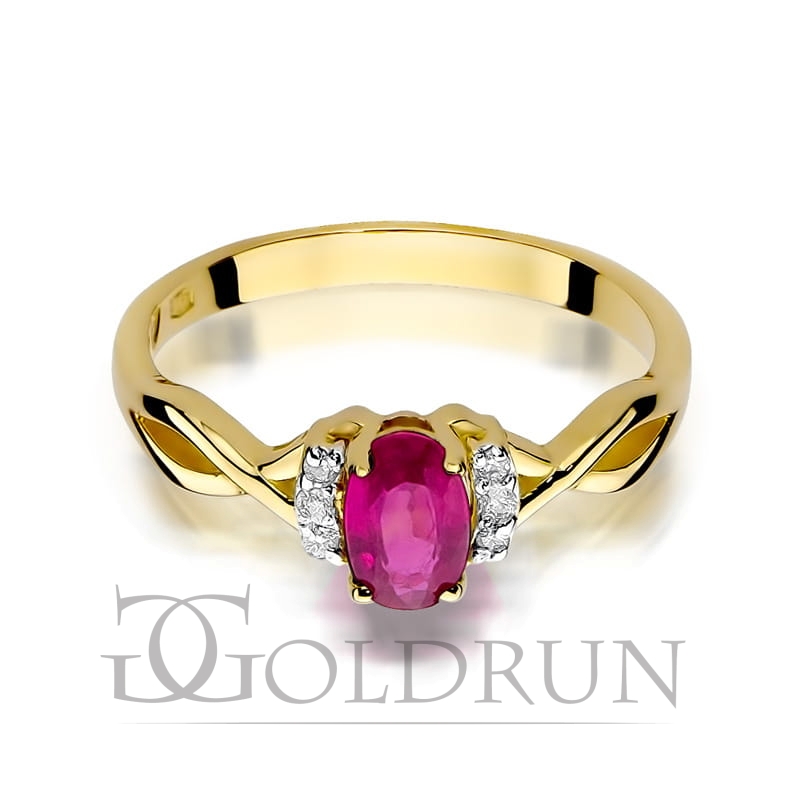 Pierścionek zaręczynowy z żółtego złota z rubinem i diamentami 0,05ct Fire Of Love