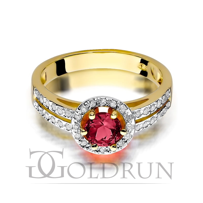 Pierścionek zaręczynowy z żółtego złota z rubinem i diamentami 0,20ct Fire Of Love