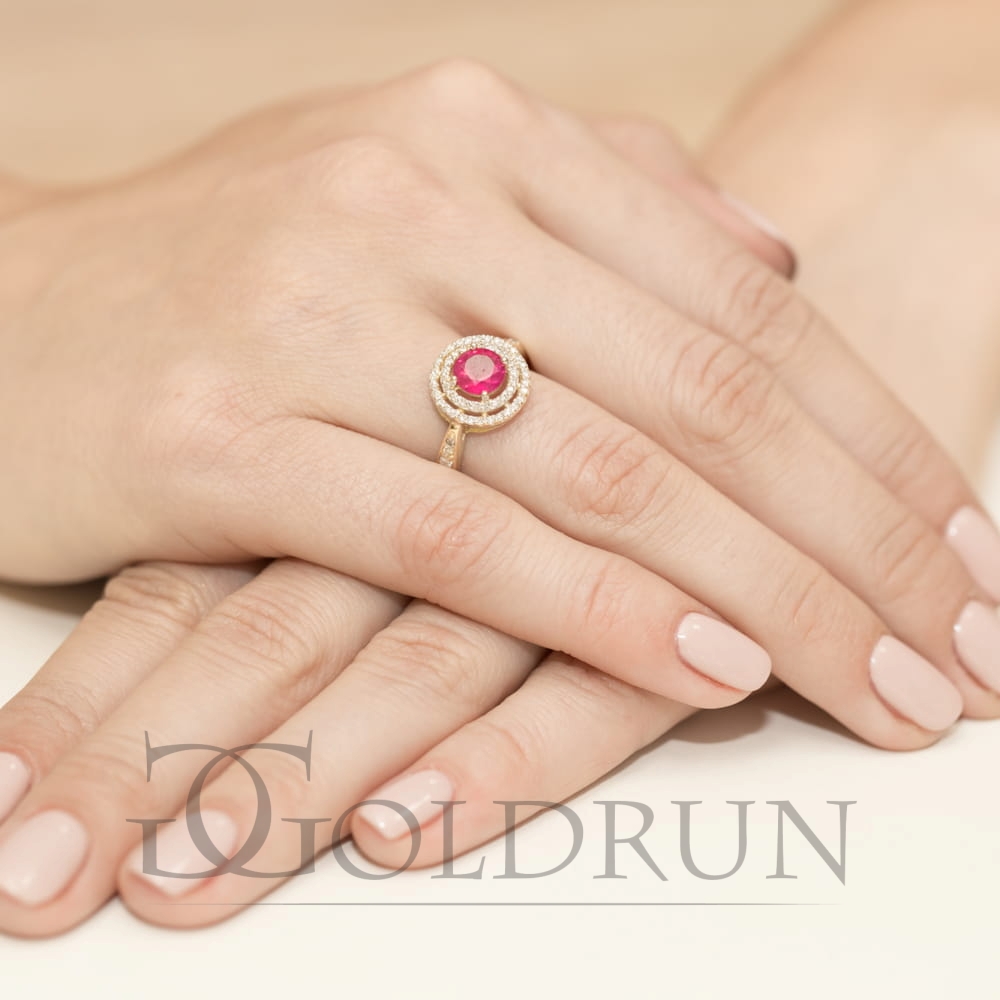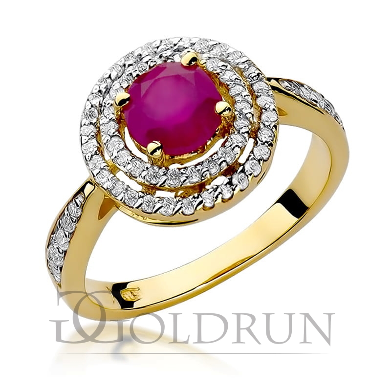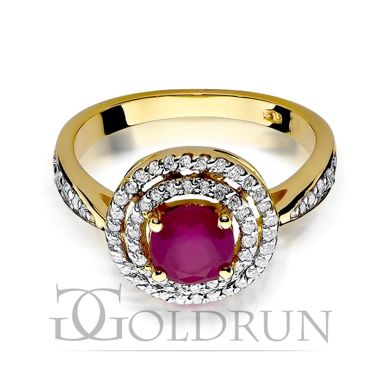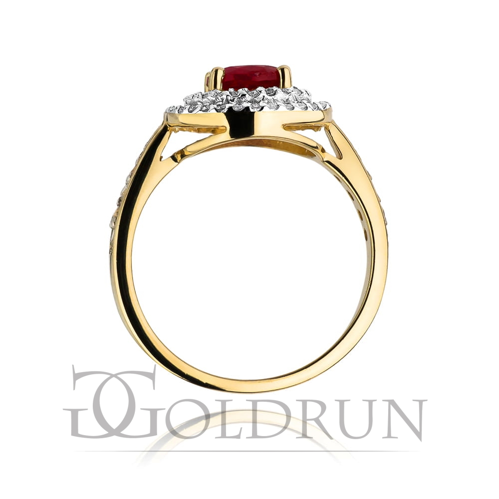 Pierścionek zaręczynowy z żółtego złota z rubinem i diamentami 0,38ct Fire Of Love