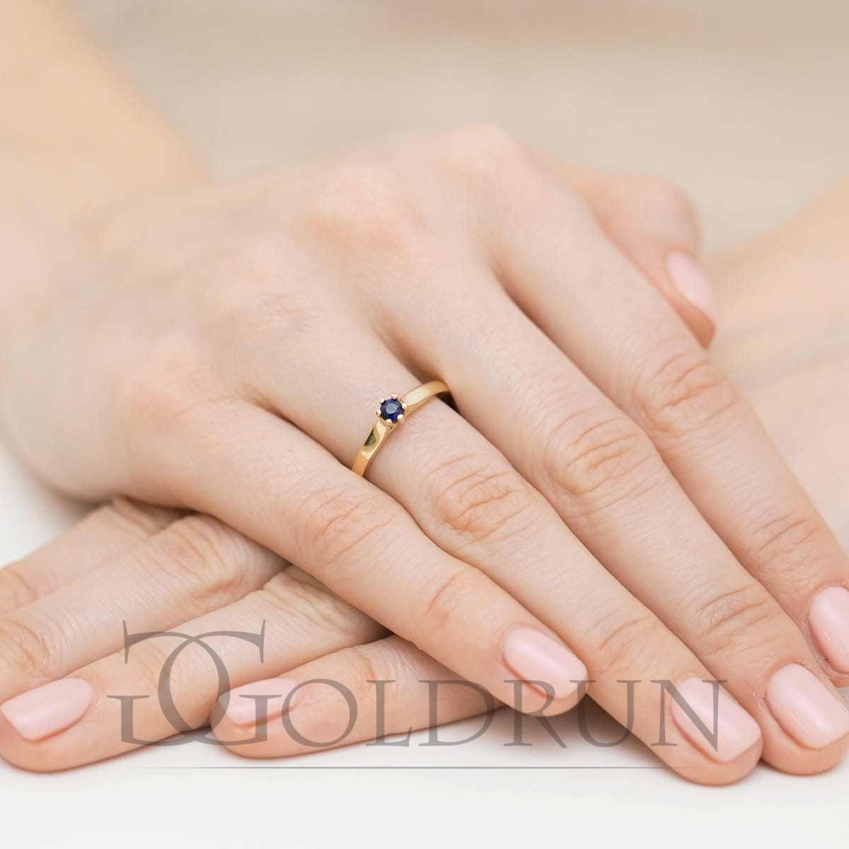 W pierścionku oprawiony szafir o masie 0,150ct