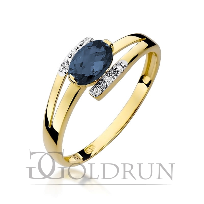Pierścionek zaręczynowy z żółtego złota z szafirem i diamentami 0,05ct Fire Of Love