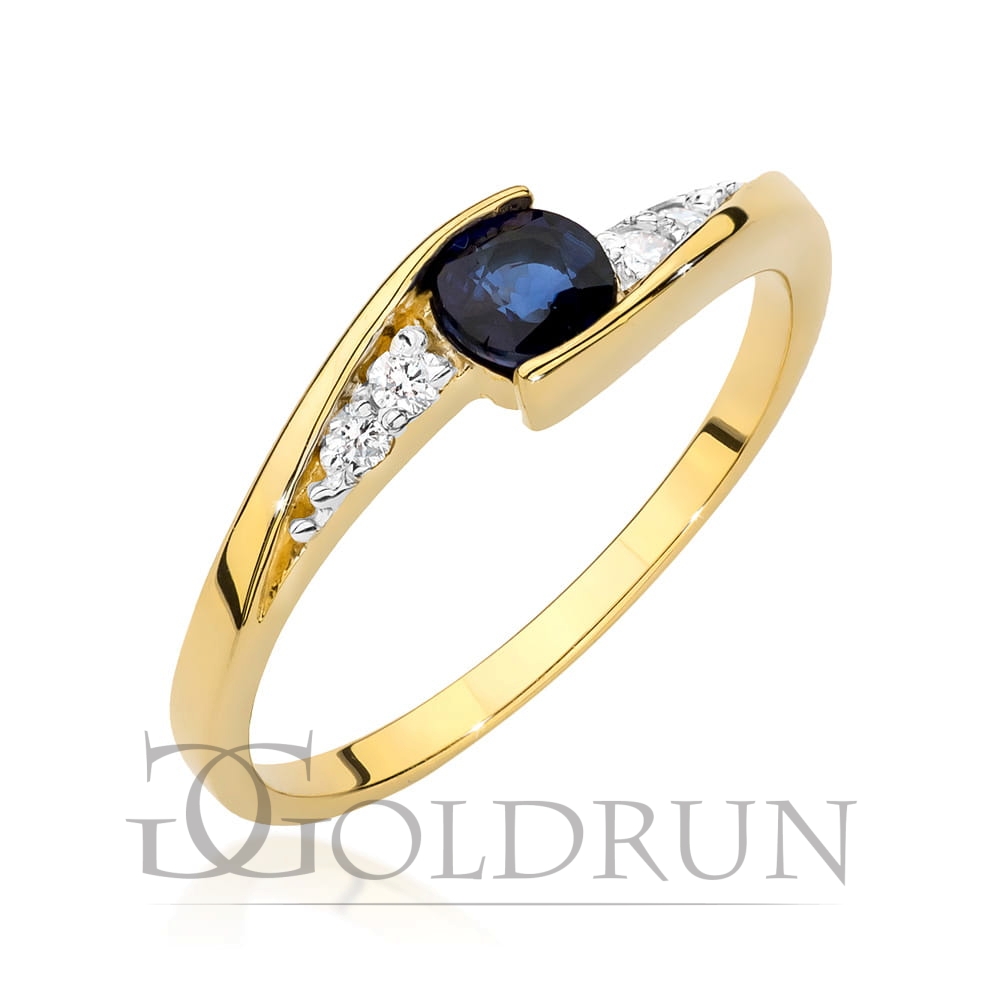 Pierścionek zaręczynowy z żółtego złota z szafirem i diamentami 0,06ct Fire Of Love
