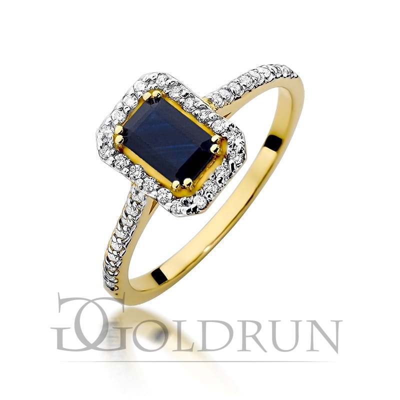 Pierścionek zaręczynowy z żółtego złota z szafirem i diamentami 0,19ct Fire Of Love