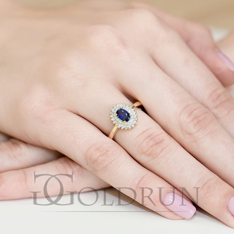 Pierścionek zaręczynowy z żółtego złota z szafirem i diamentami 0,19ct Fire Of Love