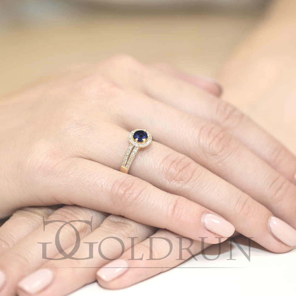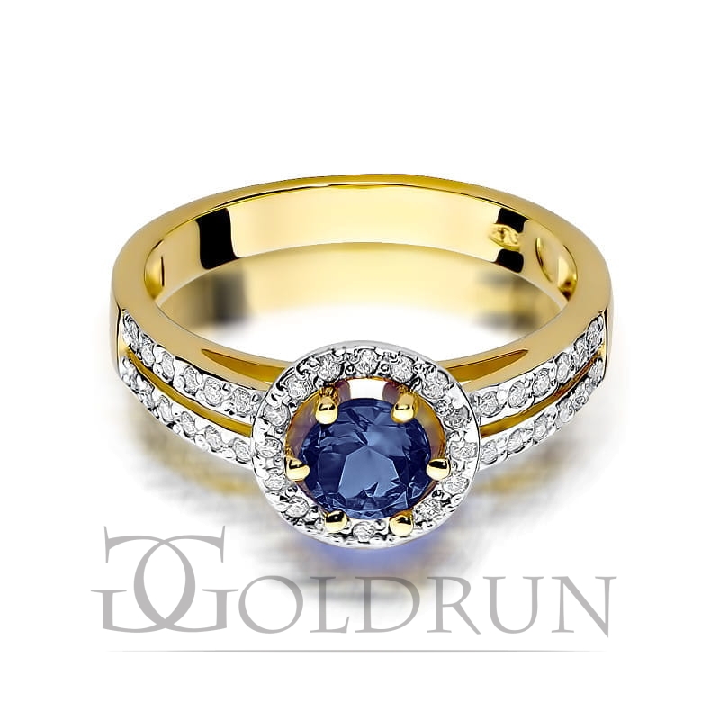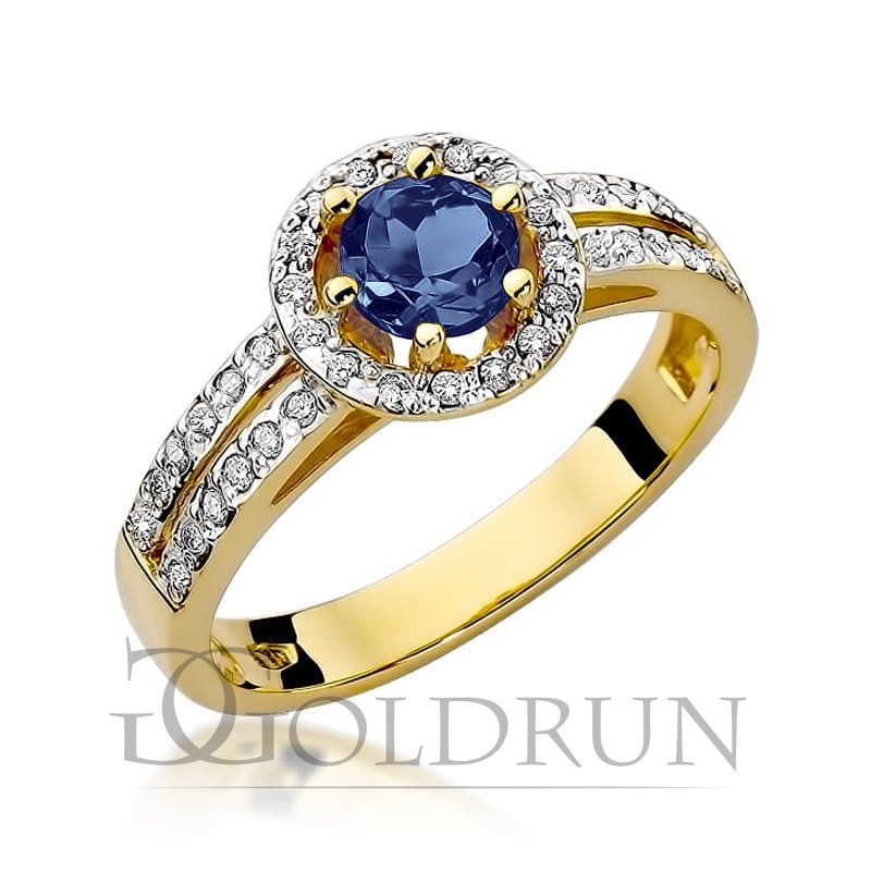 Pierścionek zaręczynowy z żółtego złota z szafirem i diamentami 0,20ct Fire Of Love