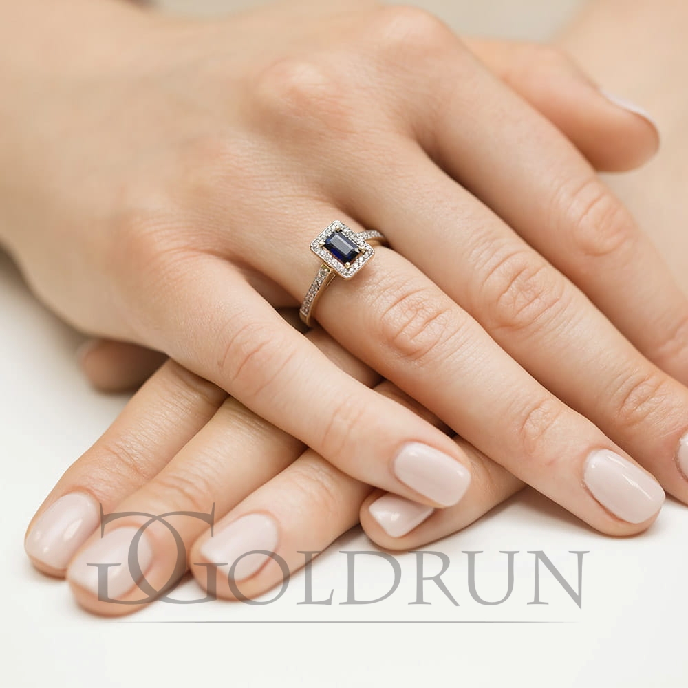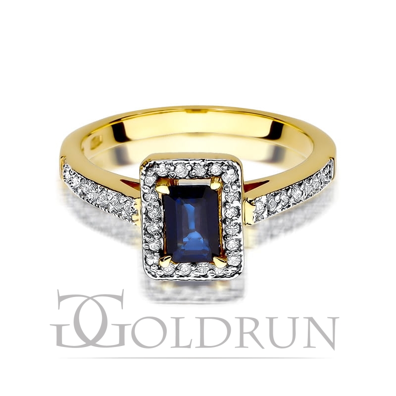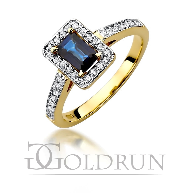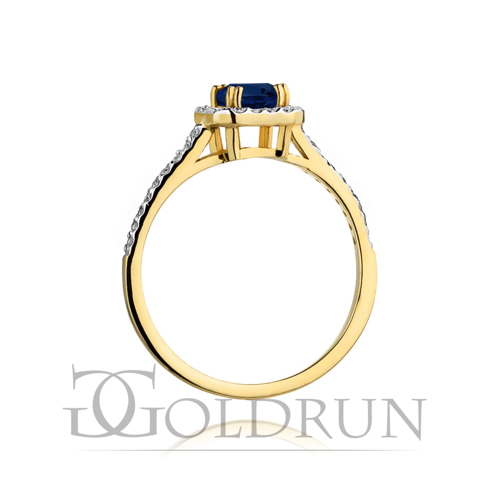 Pierścionek zaręczynowy z żółtego złota z szafirem i diamentami 0,22ct Fire Of Love