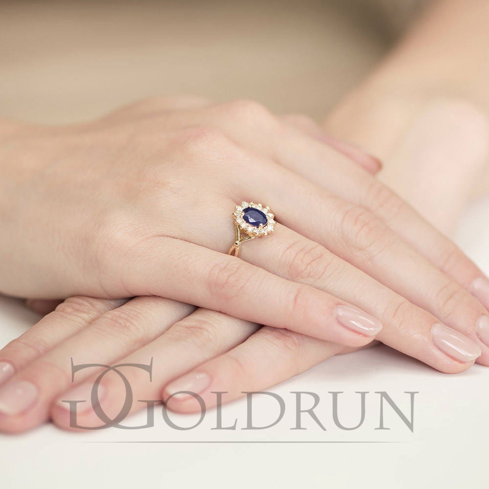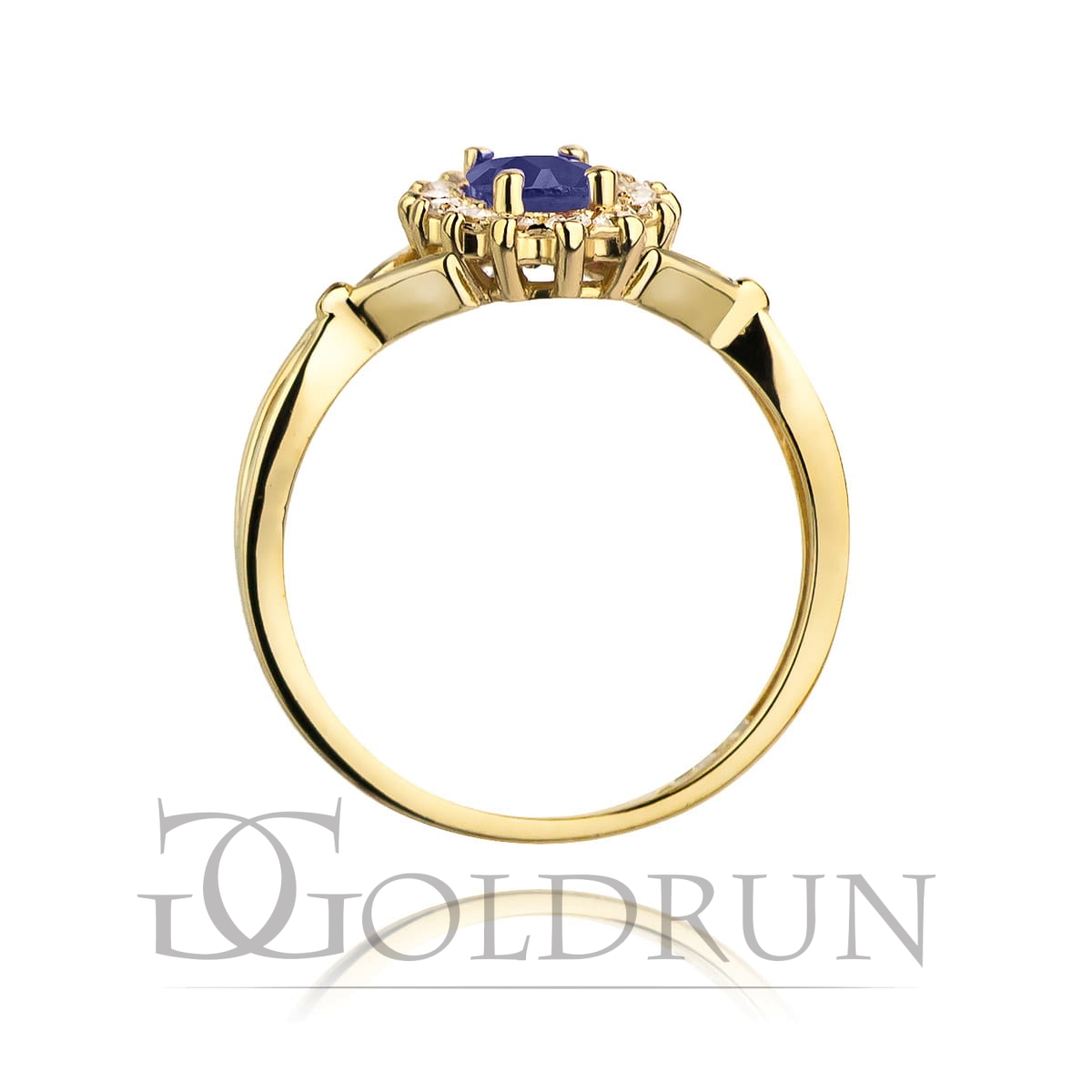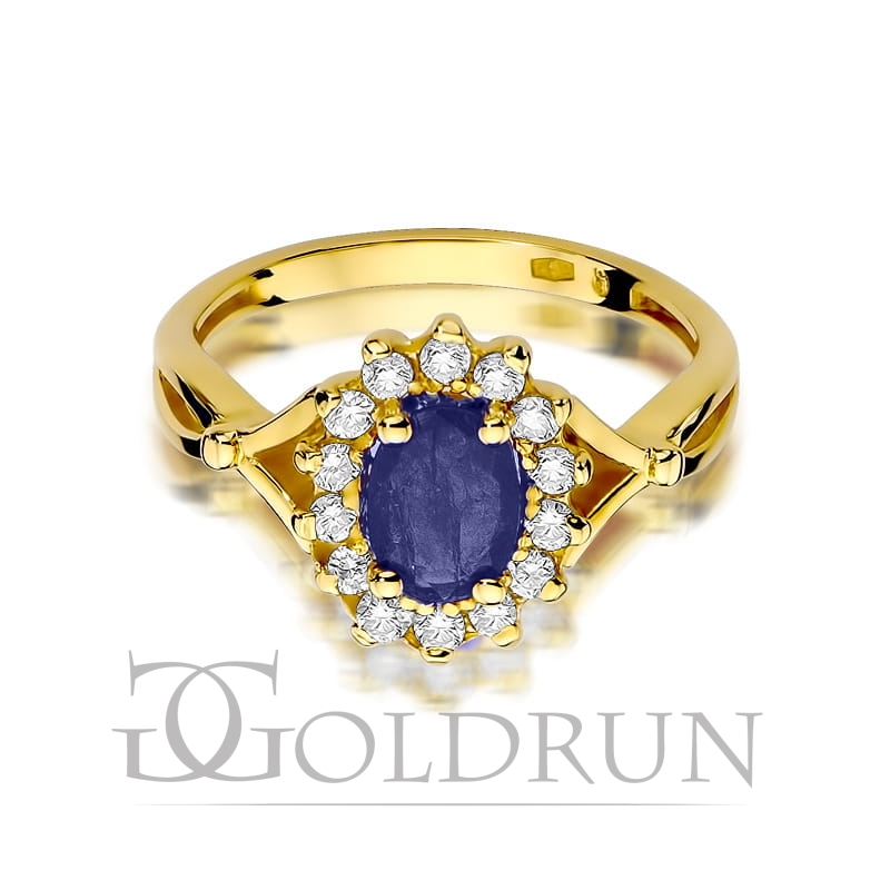 Pierścionek zaręczynowy z żółtego złota z szafirem i diamentami 0,28ct Fire Of Love