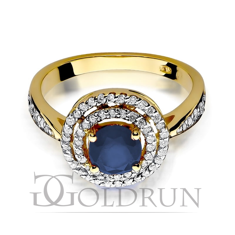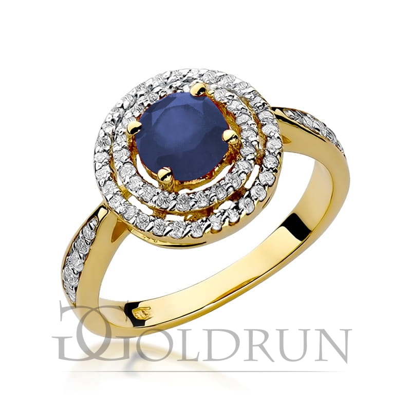 Pierścionek zaręczynowy z żółtego złota z szafirem i diamentami 0,38ct Fire Of Love