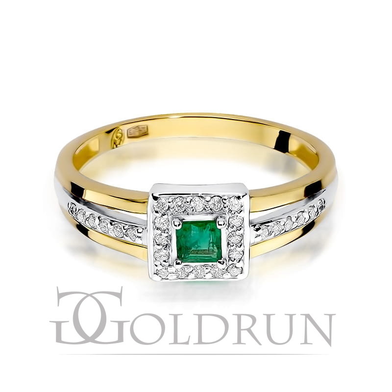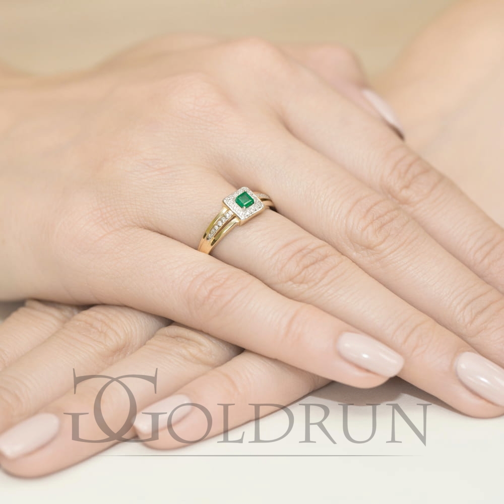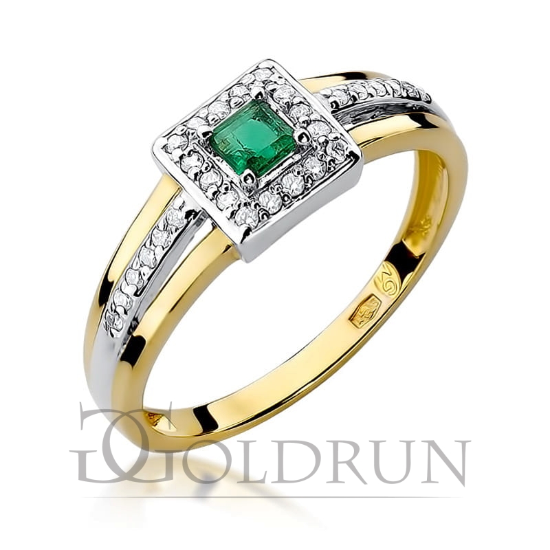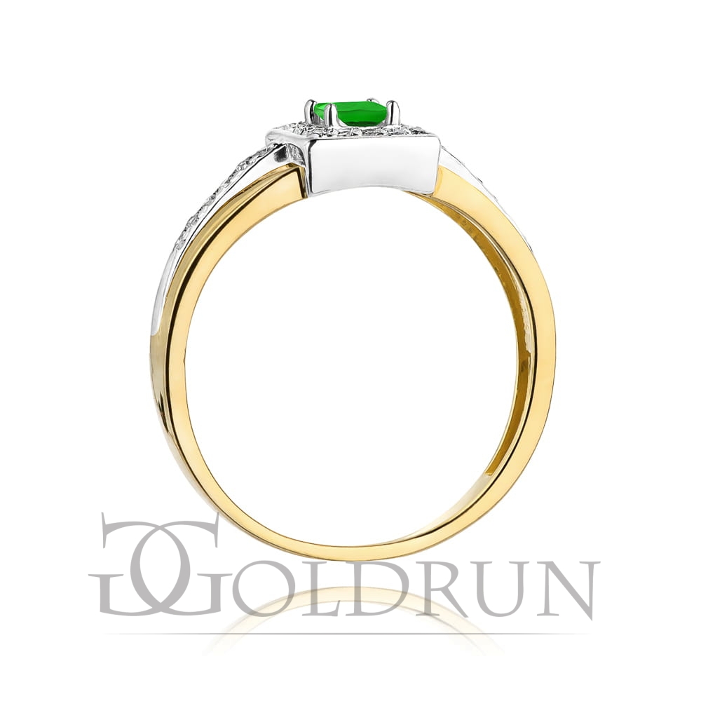 Pierścionek zaręczynowy z żółtego złota z szmaragdem i diamentami 0,14ct Fire Of Love