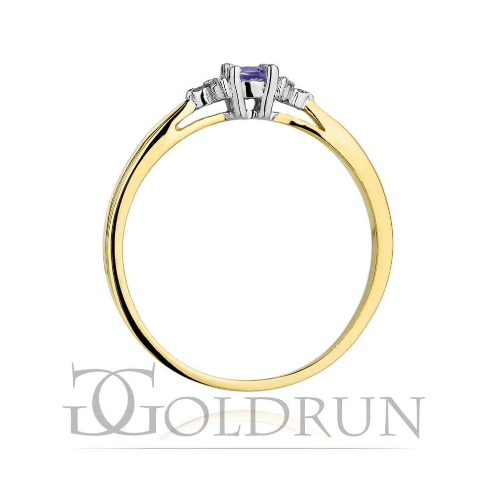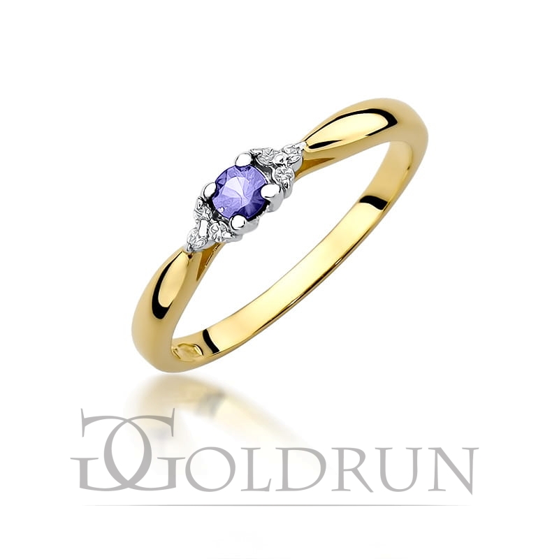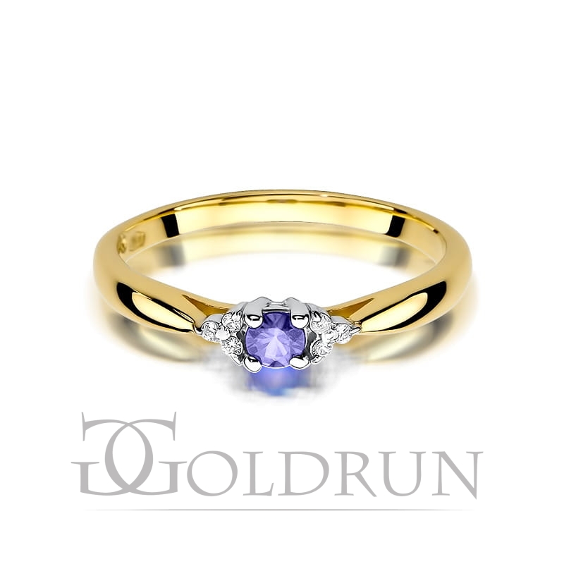 Pierścionek zaręczynowy z żółtego złota z tanzanitem i diamentami 0,03ct Fire Of Love