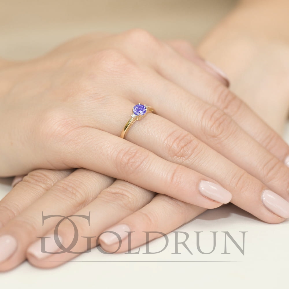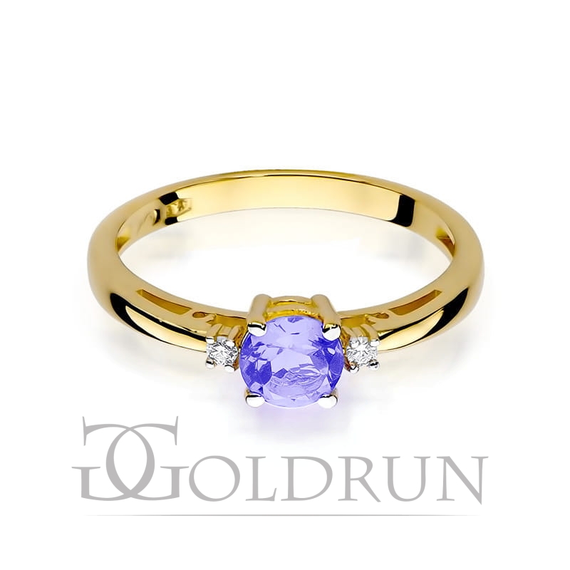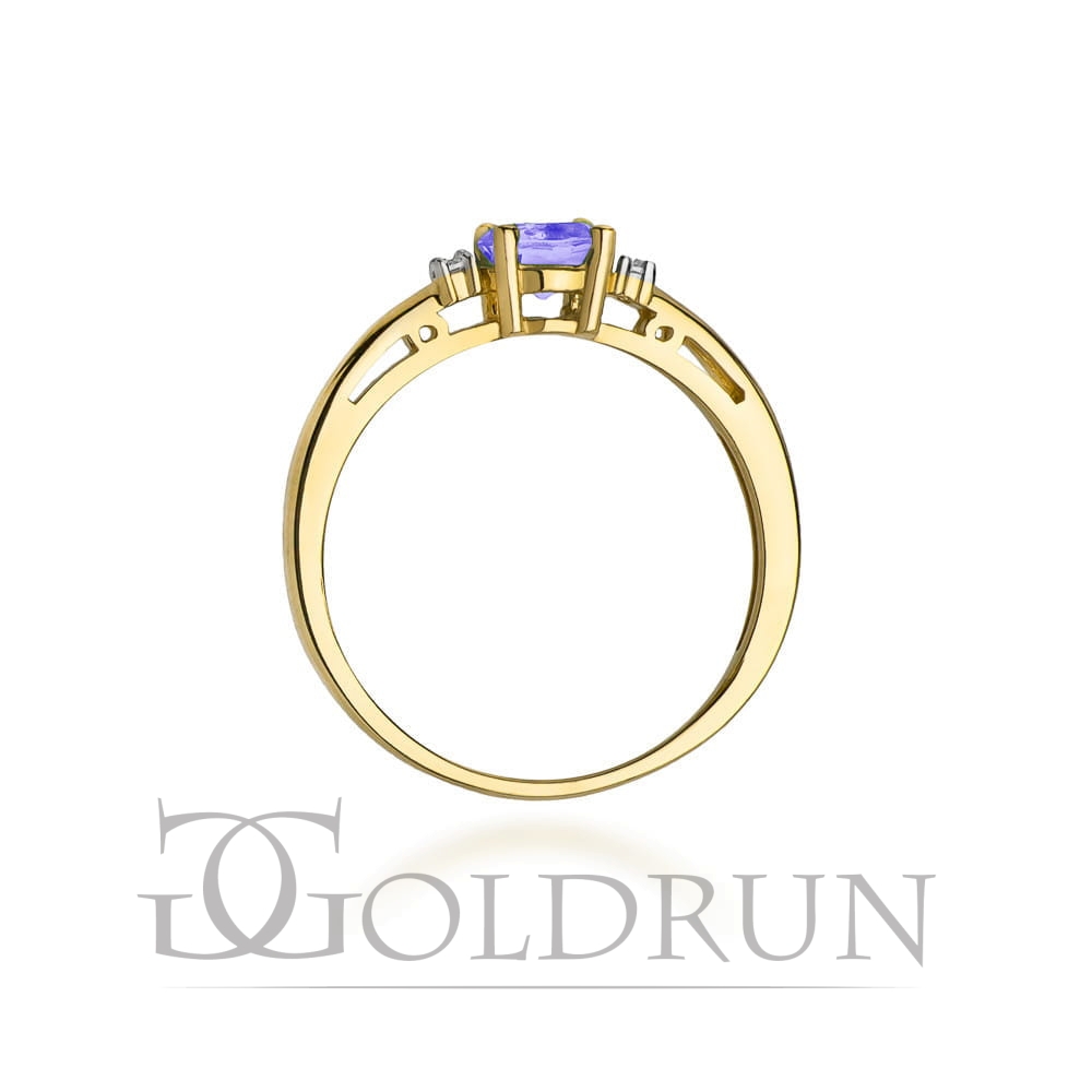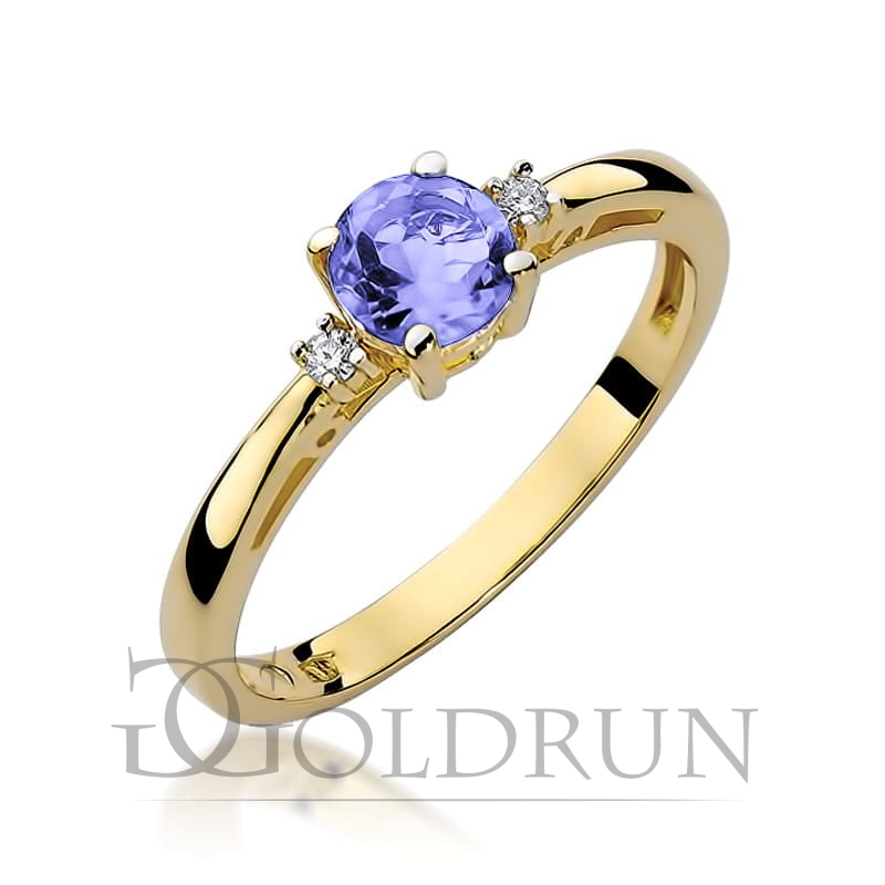 Pierścionek zaręczynowy z żółtego złota z tanzanitem i diamentami 0,03ct Fire Of Love
