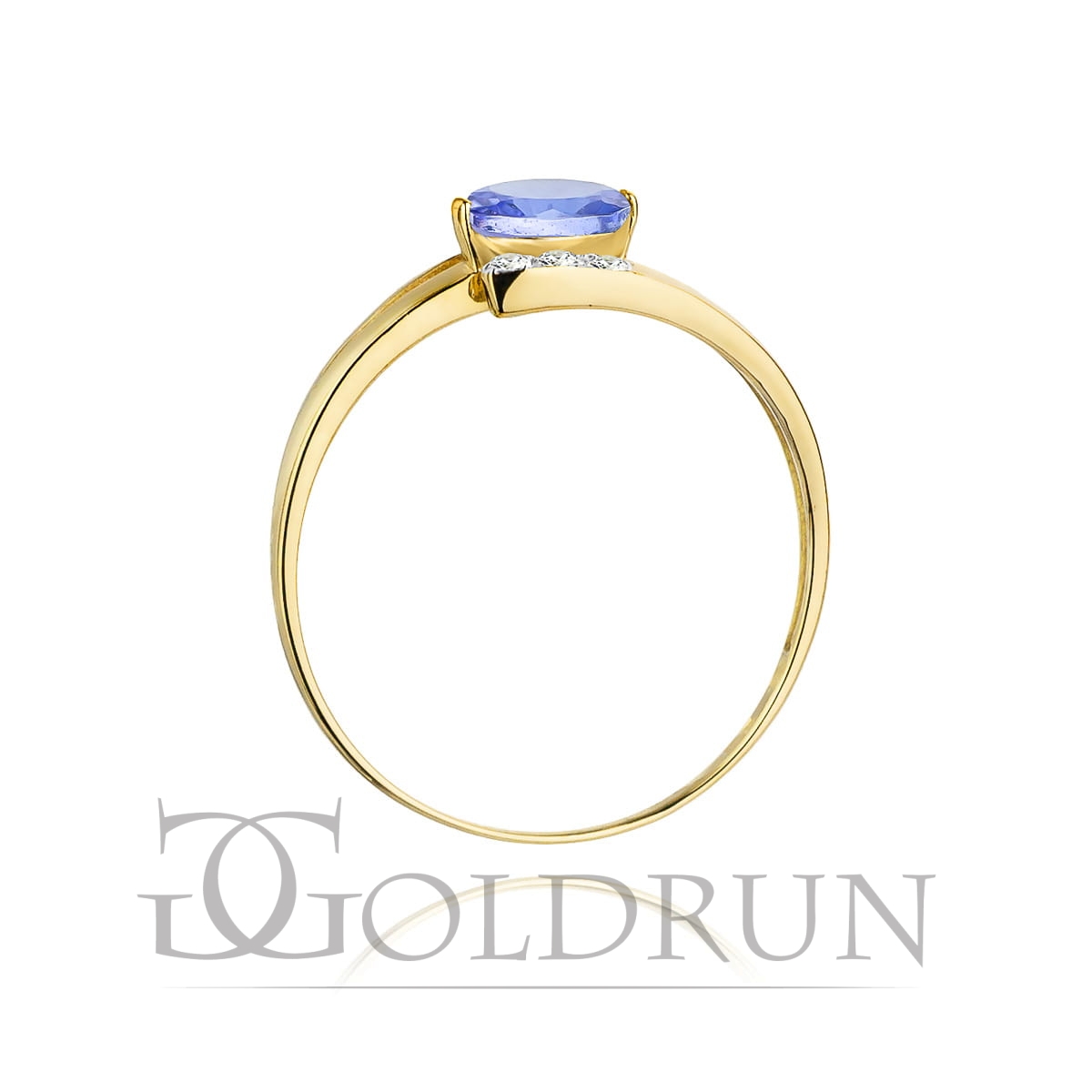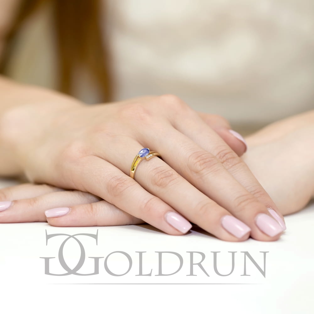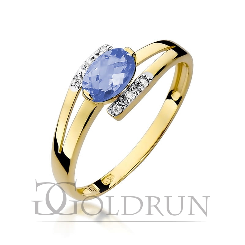 Pierścionek zaręczynowy z żółtego złota z tanzanitem i diamentami 0,05ct Fire Of Love