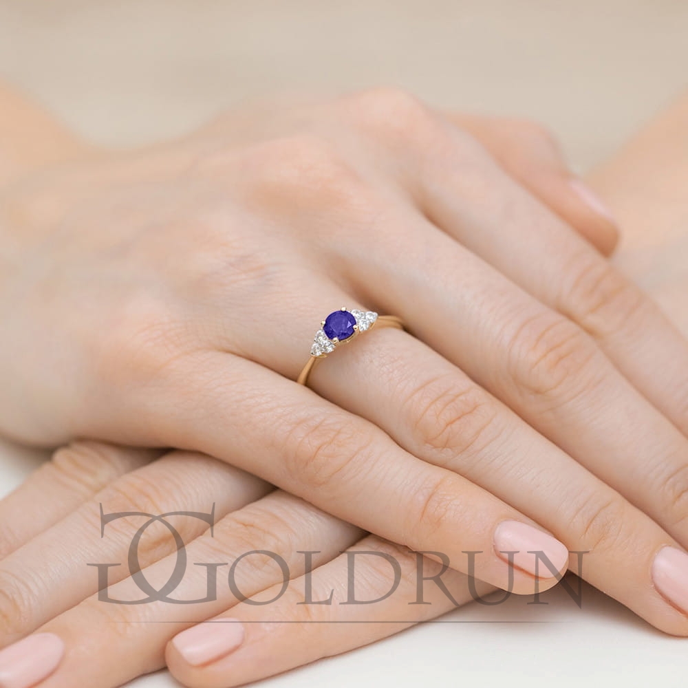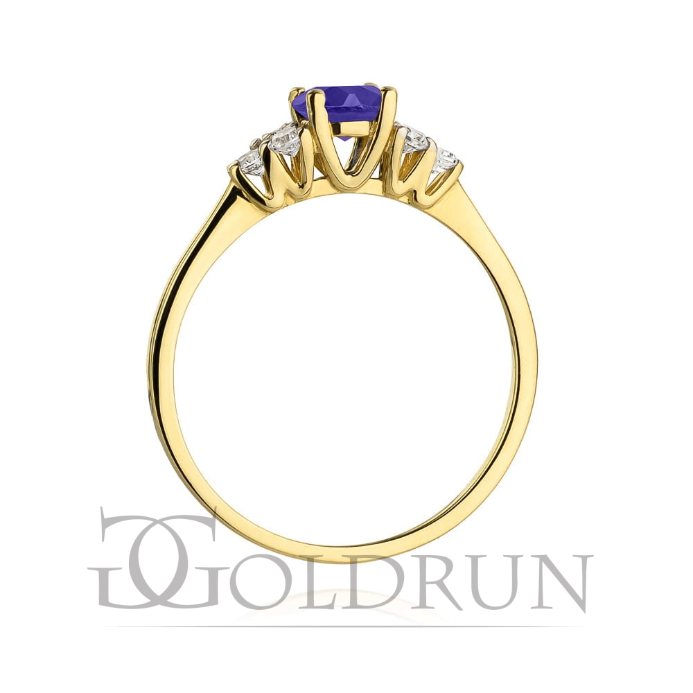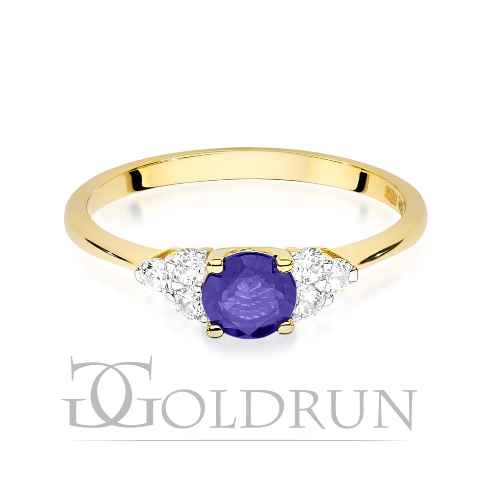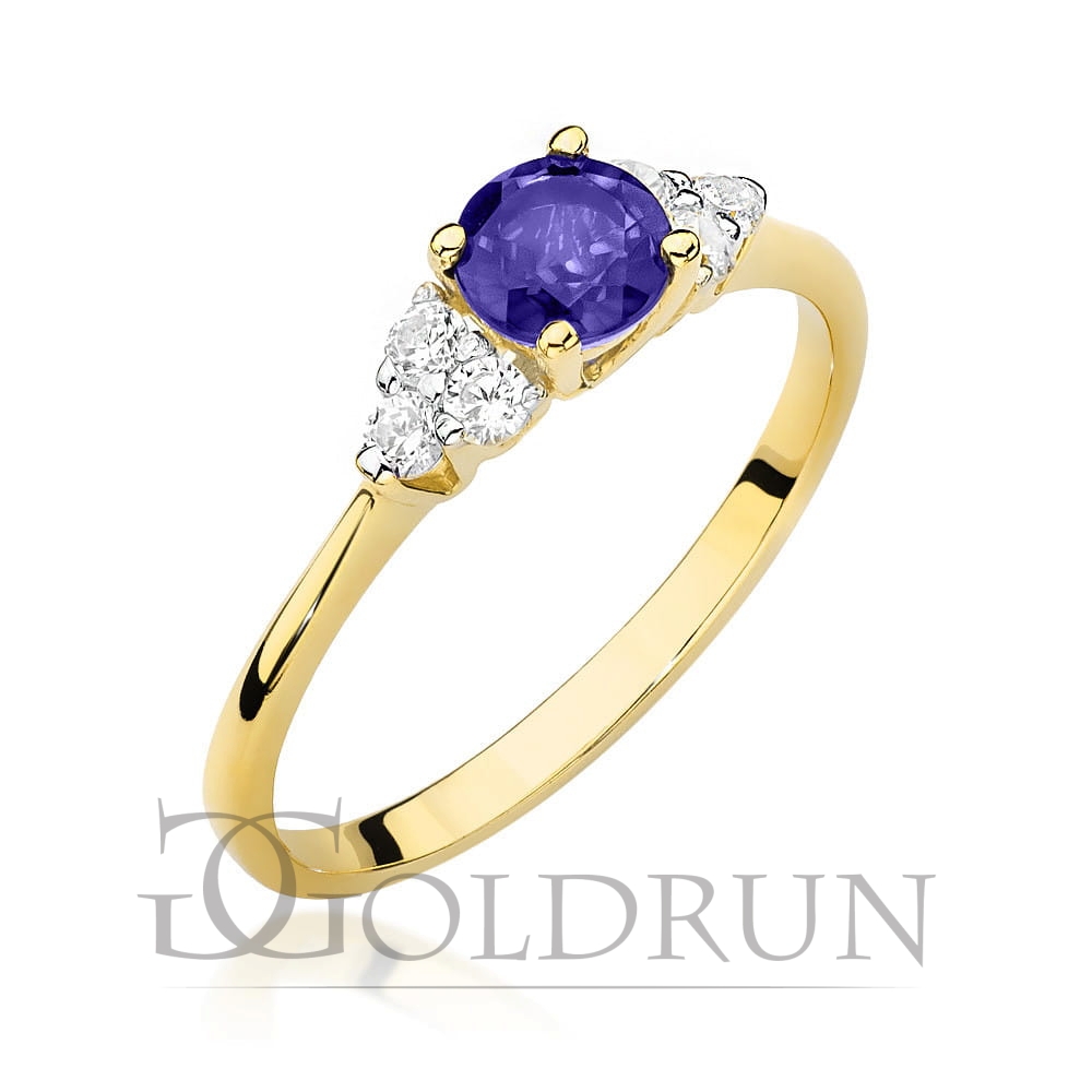 Pierścionek zaręczynowy z żółtego złota z tanzanitem i diamentami 0,18ct Fire Of Love