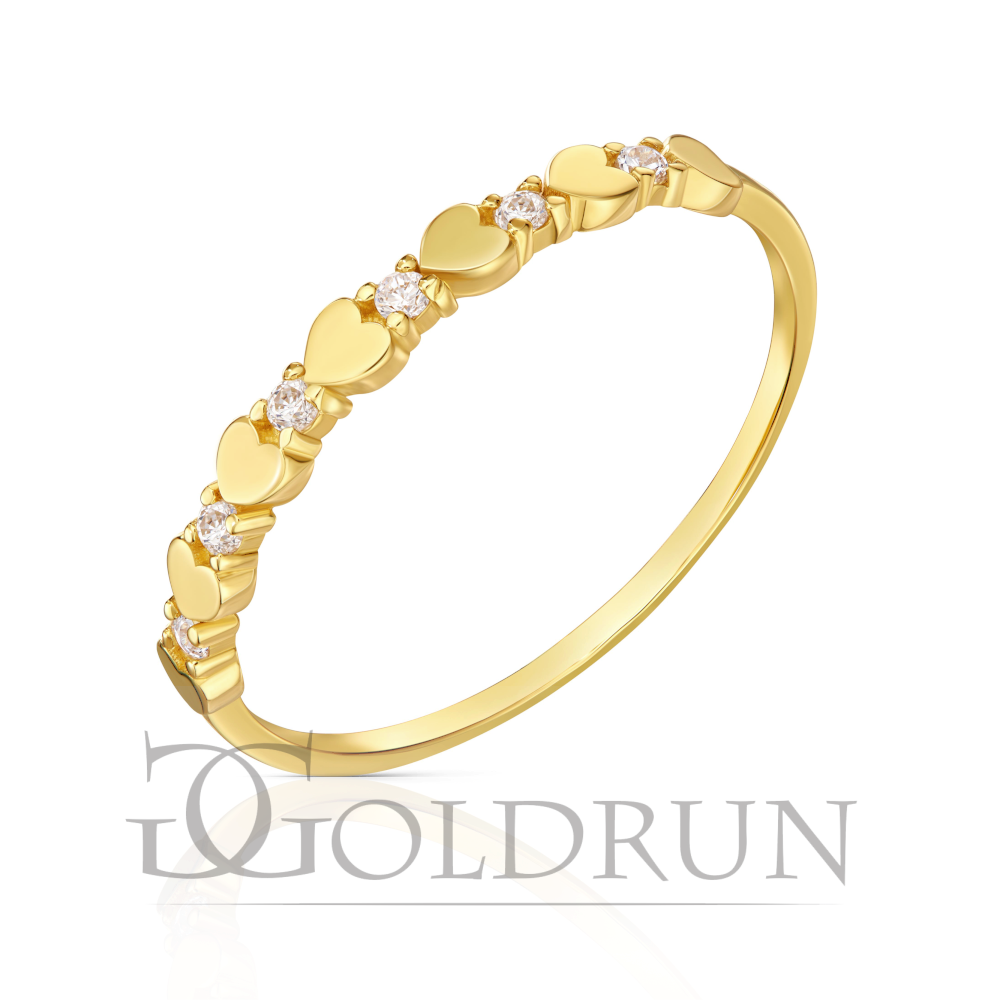 Pierścionek złote serce i cyrkonia naprzemiennie