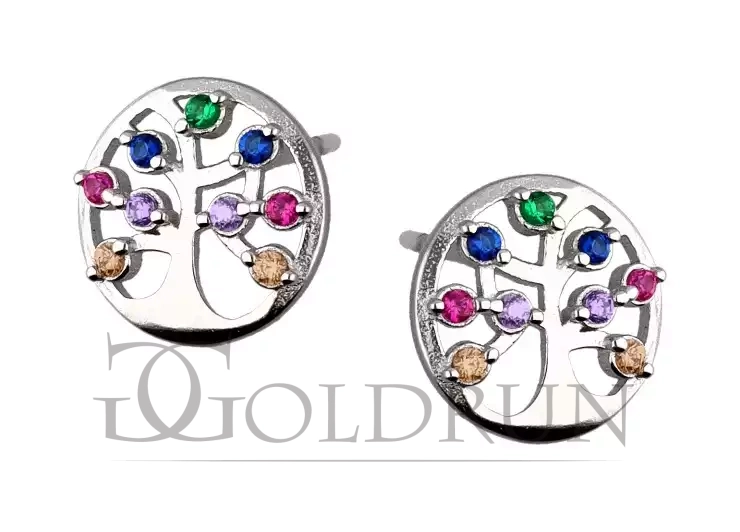 Srebrne kolczyki drzewko szczęścia z kolorowymi cyrkoniami