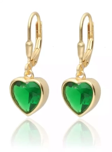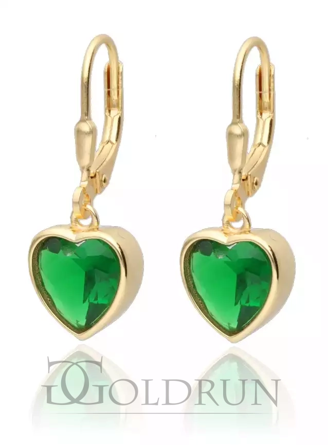Srebrne pozłacane kolczyki serce, szmaragdowa cyrkonia