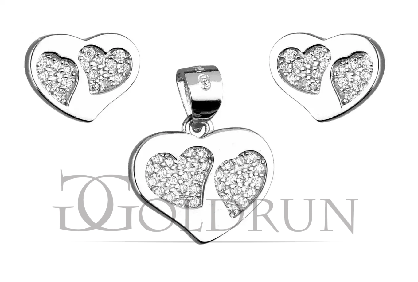 Srebrny komplet, kolczyki i zawieszka, serce