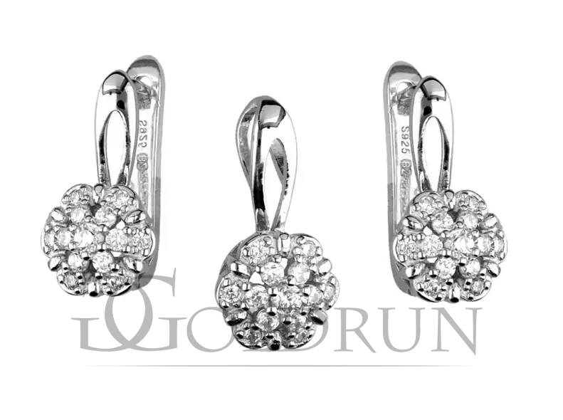 Srebrny komplet biżuterii, kolczyki + zawieszka do łańcuszka, cyrkonie