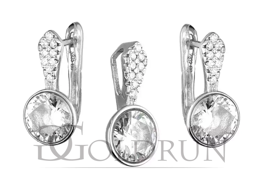 SILVERElegancki srebrny komplet biżuterii, kolczyki + zawieszka do łańcuszka
