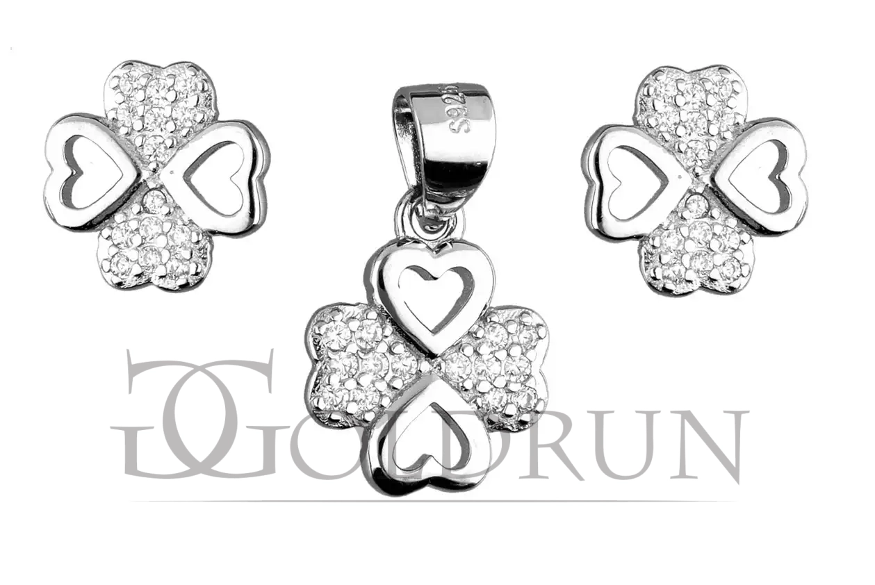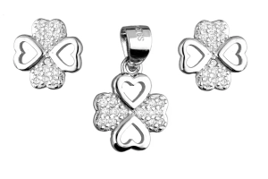 Srebrny komplet kolczyki + zawieszka, koniczyna cyrkonie
