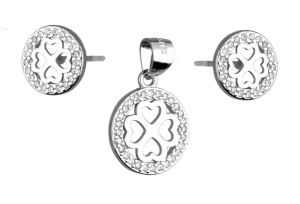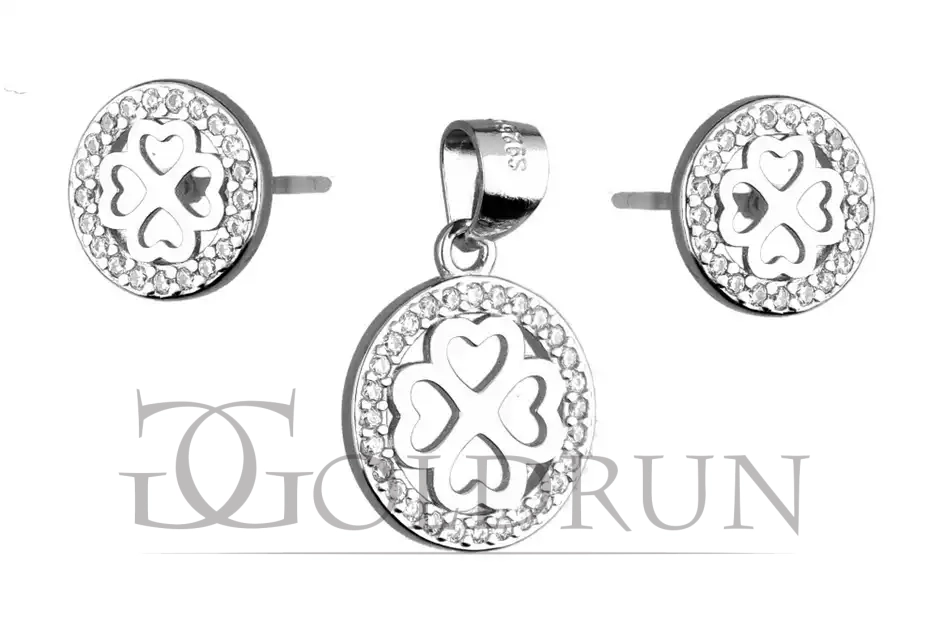 Srebrny komplet kolczyki + zawieszka, koniczyna w kółku z cyrkonii