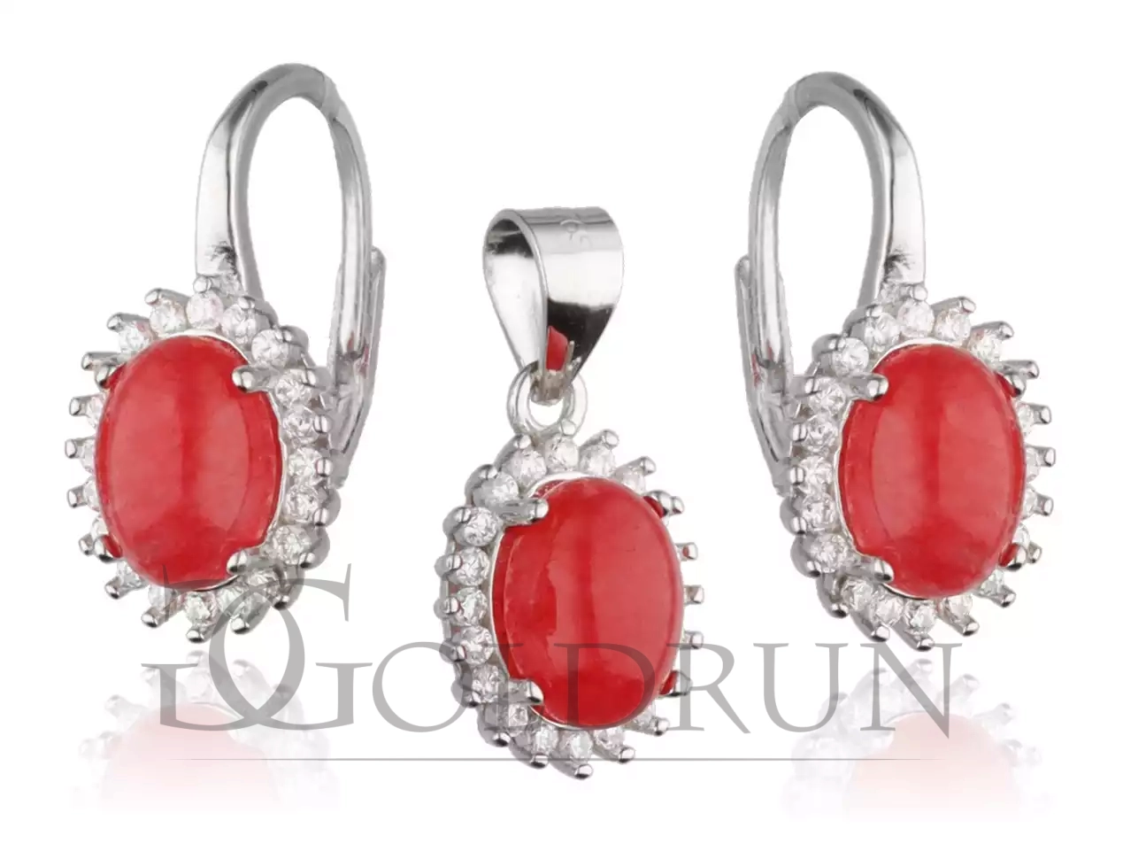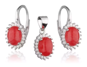 Srebrny komplet z pięknym czerwonym kamieniem, kolczyki i zawieszka