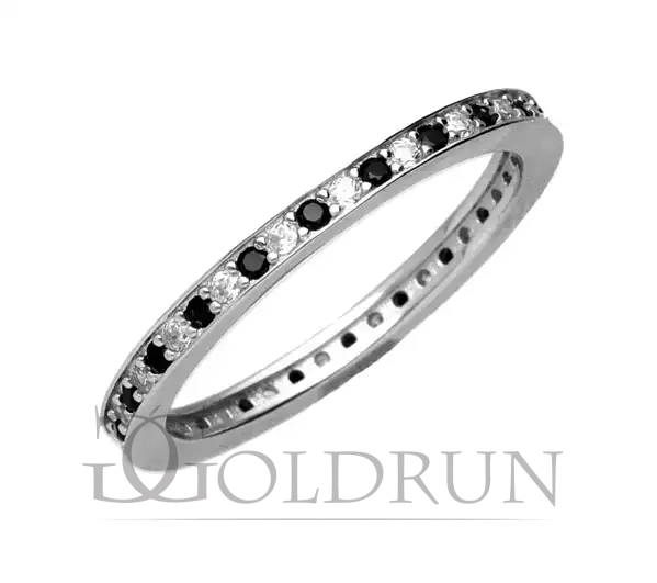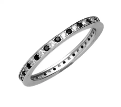 Srebrny pierścionek cienka obrączka z białymi i czarnymi cyrkoniami