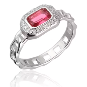 Srebrny pierścionek - sygnet z rubinową cyrkonią